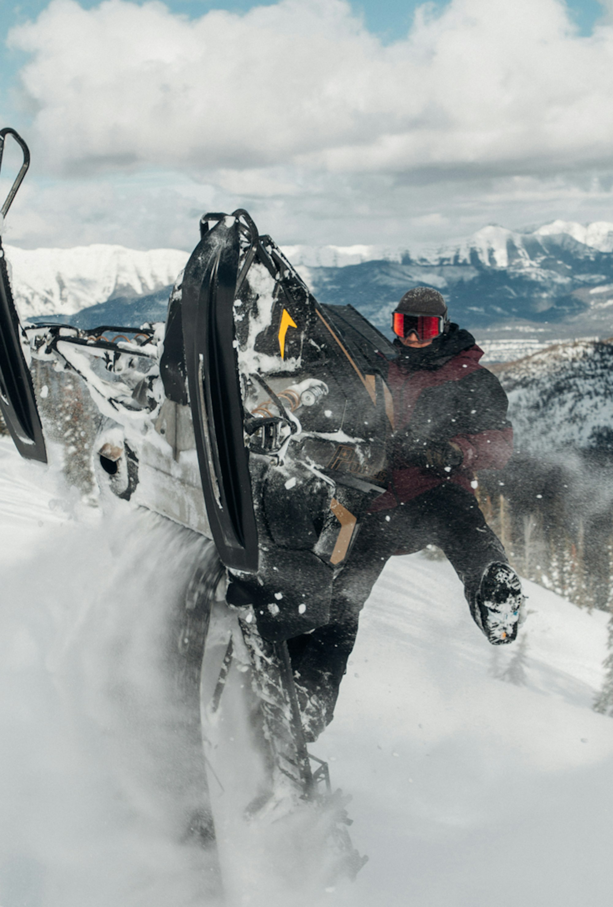 Our first day in Cooke we got into a bit of a pickle. We had been exploring for a couple hours, and swung by a warming hut for a bite to eat. Inside, I asked a couple locals where we should ride to find some good sled skiing terrain. They obliged and quickly showed us some zones, but when we actually got on our sleds, the weather turned ugly. We made it up and over the pass we were directed towards, but we got quite turned around in the alpine. Visibility was terrible and everything looked the same. We started riding toward the pass we thought we came over, but then realized it was completely different. We backtracked for a bit, found a steep hill that people had been using, and descended in hopes of finding the groomer we rode up on. At the bottom, the groomer was nowhere in sight. Chris tried to ride back up the hillclimb we’d just came down with no luck. After rolling his sled once and getting stuck on his second attempt, he was over it. We parked at the bottom where I remembered that my Garmin InReach was tracking. I pulled it out and got on the map. Realizing we were nowhere near where we thought, I used the InReach to help us navigate back to a groomed trail. Needless to say, we were both psyched when we found it.