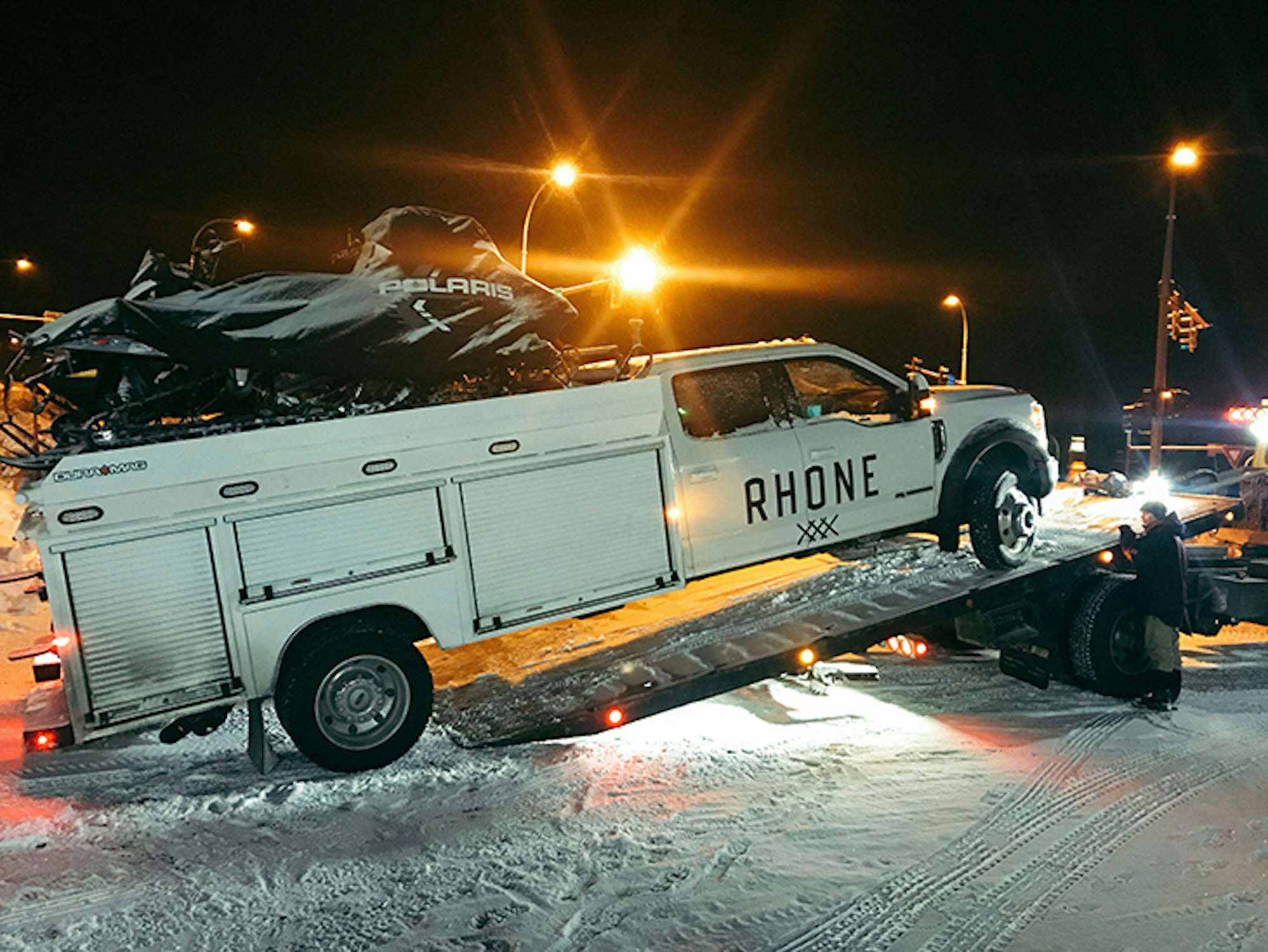 The next morning, in a spur of the moment call, we decided to start cruising west. The Strictly Business boys were headed back stateside for a week of rest (they had been in Canada for a few weeks) and we were seeking out a more stable snowpack in coastal British Columbia. We stopped on Rogers Pass for a quick ski tour and then cruised down to Revelstoke to get food, fuel and, most importantly, stop by the aquatics center for a much-needed soak and shower. My hot tub session was a bit too relaxing; at about 7 p.m. during our stop at the gas station I loaded the F-550 up with 94 octane fuel instead of diesel. I wouldn’t recommend trying this move. Luckily, we noticed before starting the vehicle, I called AAA, and we waited for a tow truck to come and haul it off to have the tank and filters drained. This was the start of a very long night and a string of additional problems.