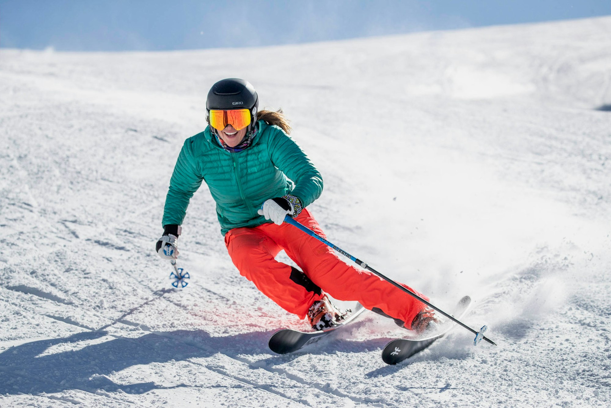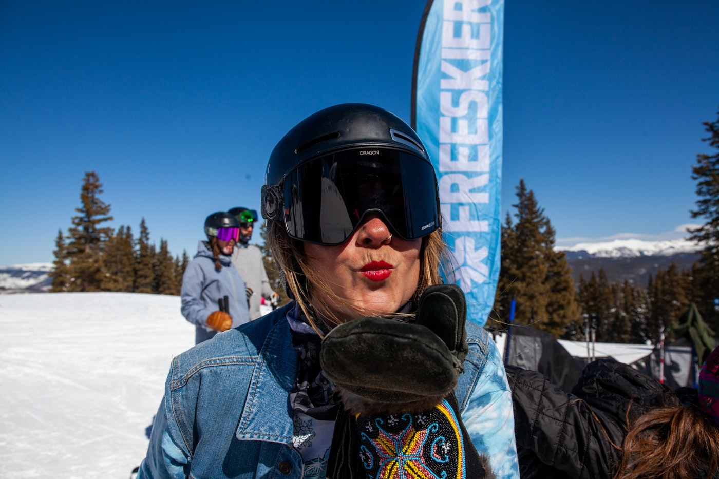 Ski tester Kristin Bersani showing some love on a beautiful ski day. PHOTO: Erin Spong