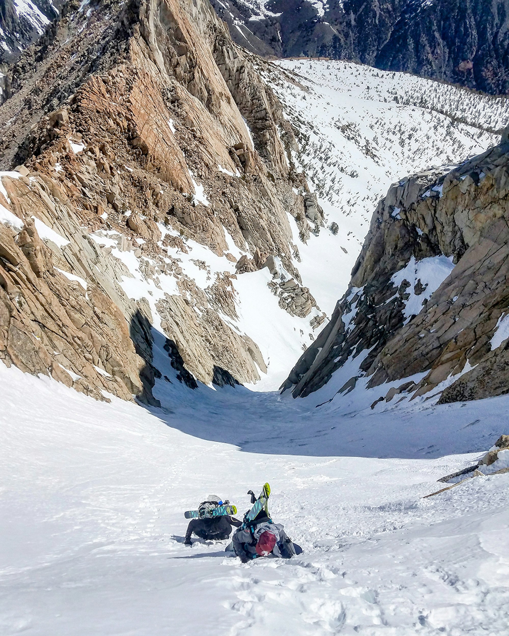 I couldn’t find anyone to go with me on the trip, so my whole plan was just to drive out there and I figured I’d find some people who lived in California or some friends along the way. I met up with a buddy from Aspen and skied Whitney and Bloody with him. And I was also talking with Bernie on Instagram, he told me if I ended up in Mammoth to hit him up and we’d go ski some lines. So we linked up one day, and then I sent Christian—I met him through a friend on social media—a message and he happened to be going out with Bernie the next day so I linked up with them. It was really cool to get out with them and see things from the locals’ perspective. We skied a really cool line that neither of them had actually ever skied before, it was a really cool experience.