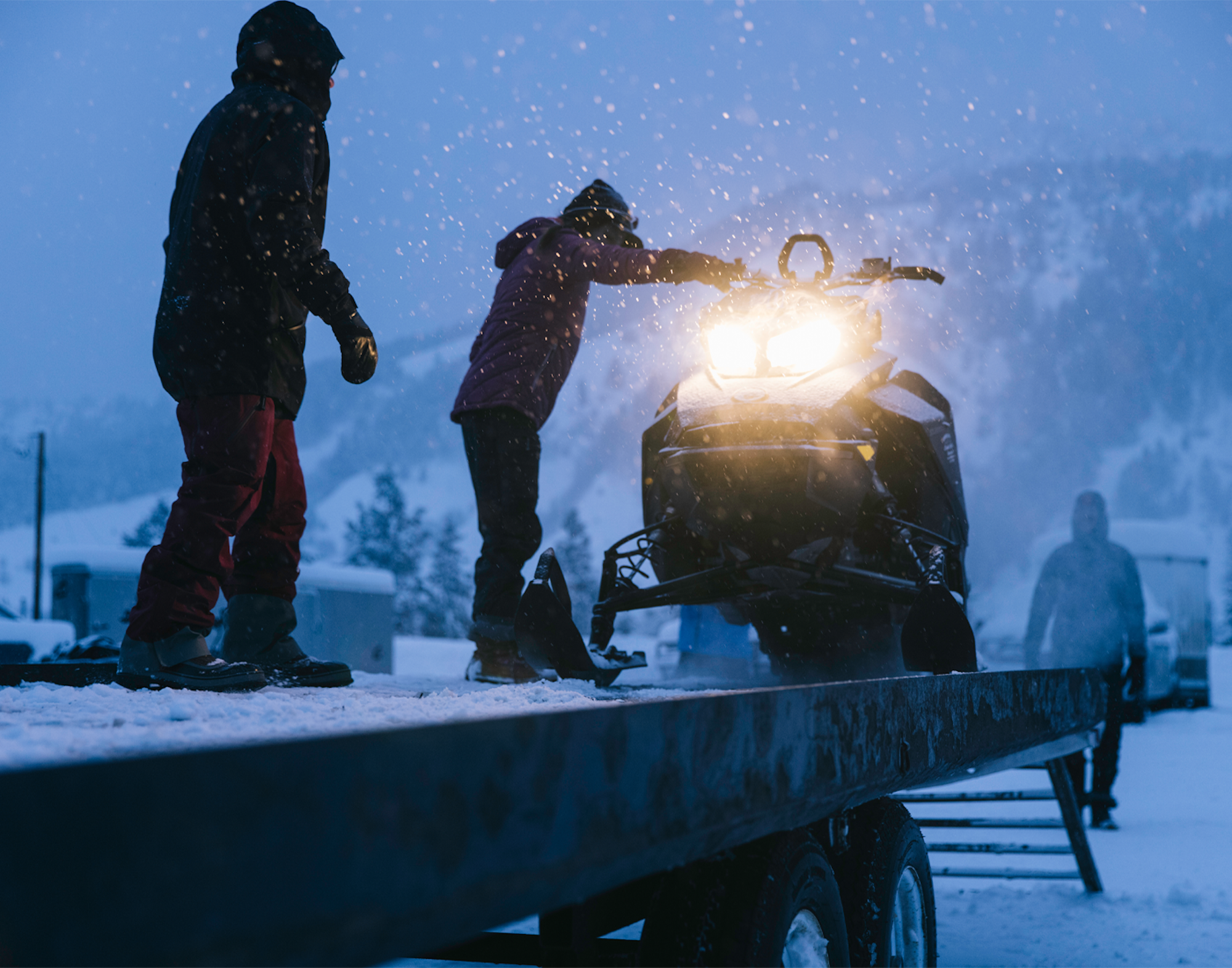 Unloading snowmobiles off of a trailer feels unnatural for those who have never done it before. But sometimes you just gotta hop on the horse and figure it out yourself. Saddle up!