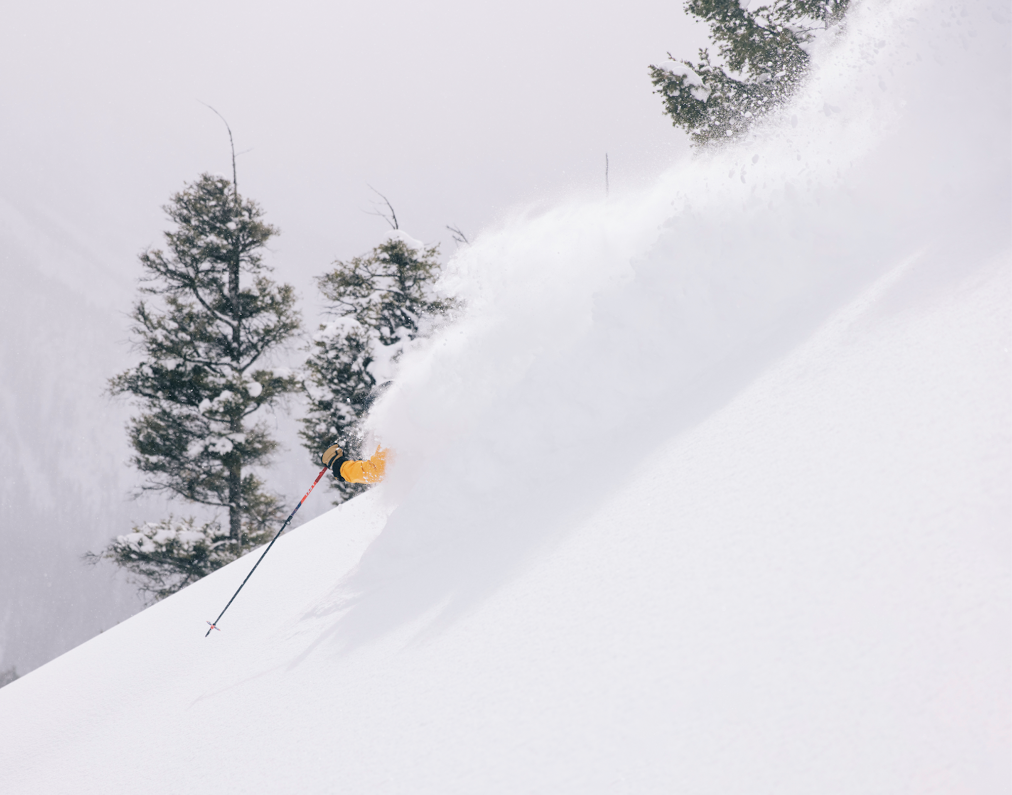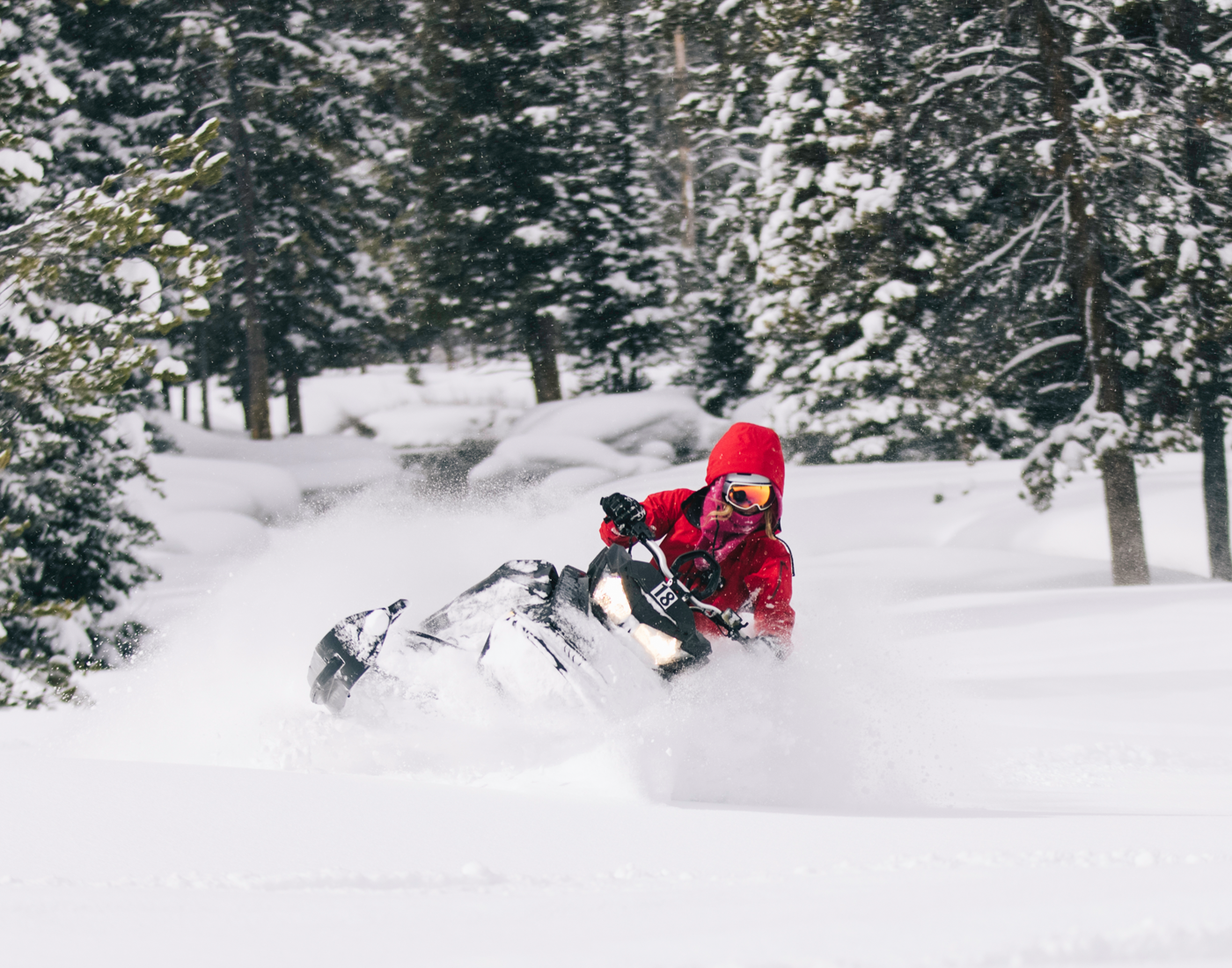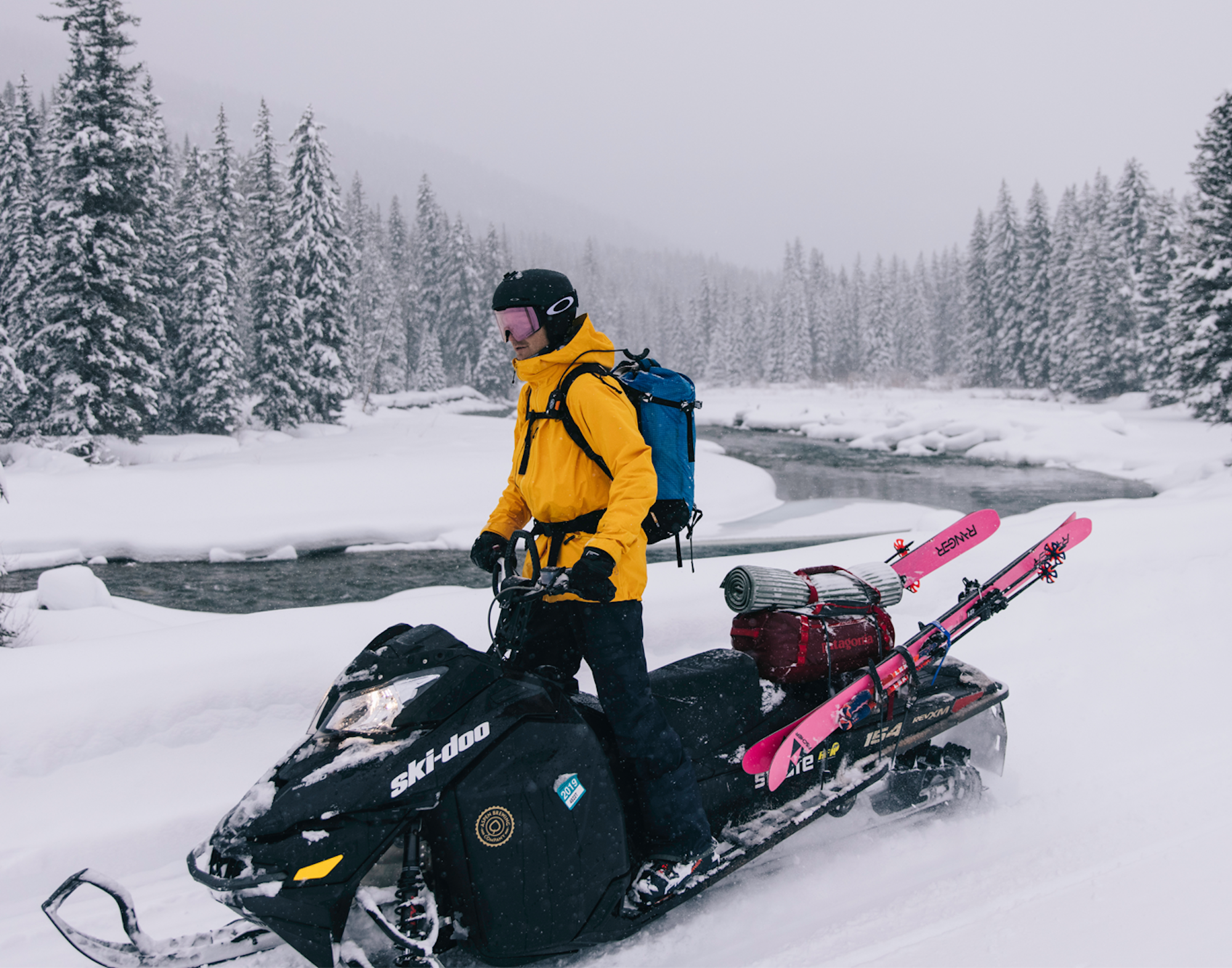 Up early on day two, we headed out for a new tour, this time to a ridge we spotted a day earlier. The turns were better than expected and, by lunchtime, we were back at the snowmobiles, scheming our next move.