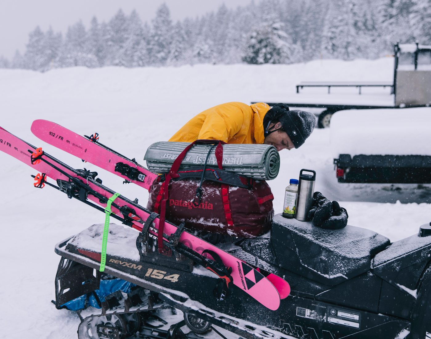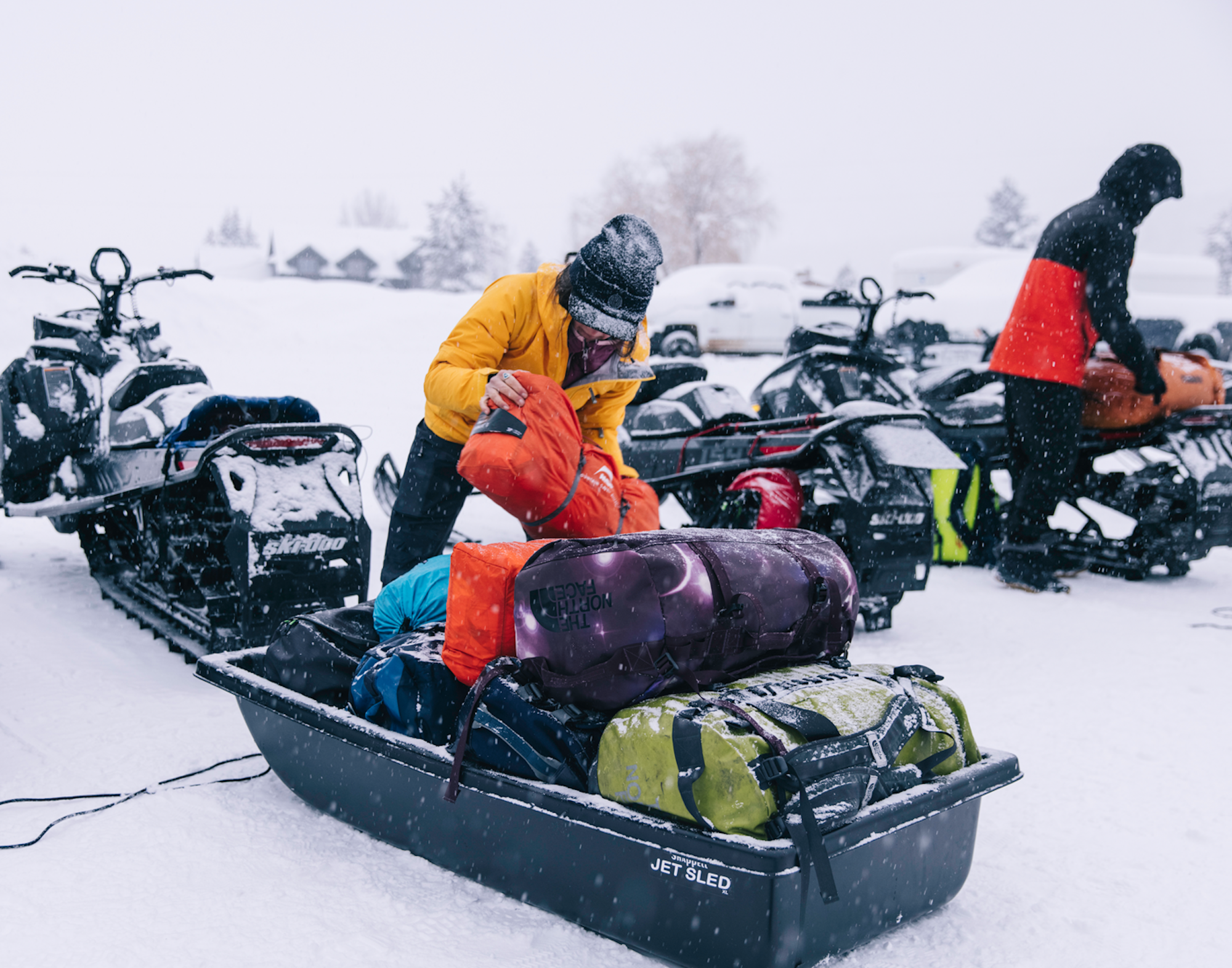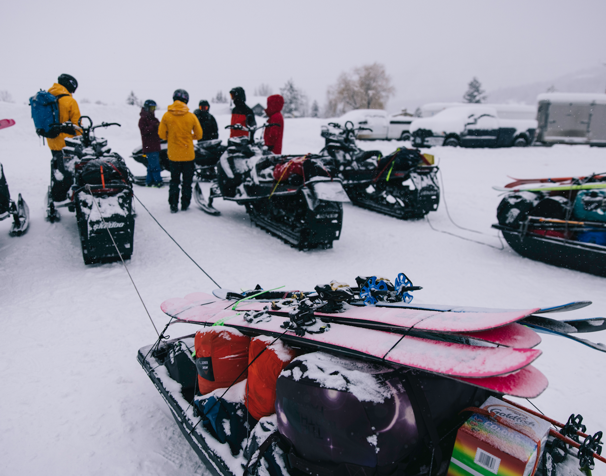 After a few weeks of planning, methodical gear packing and an afternoon at the local grocery store, we met at the trailhead on a stormy Saturday morning, just as dawn struck. Ready to load our pulk sleds and snowmobile into the Grey River Range of Wyoming, I thought to myself “God, I hope this works out.” The weather looked good, relatively speaking. A foot of snow was on the way, bringing with it “warmer” weather—most nights would stay above zero-degrees Fahrenheit and daytime temps would flirt with the mid-twenties. The risk was humidity and, in turn, lots of sweat. While winter camping, you are often times your own worst enemy…