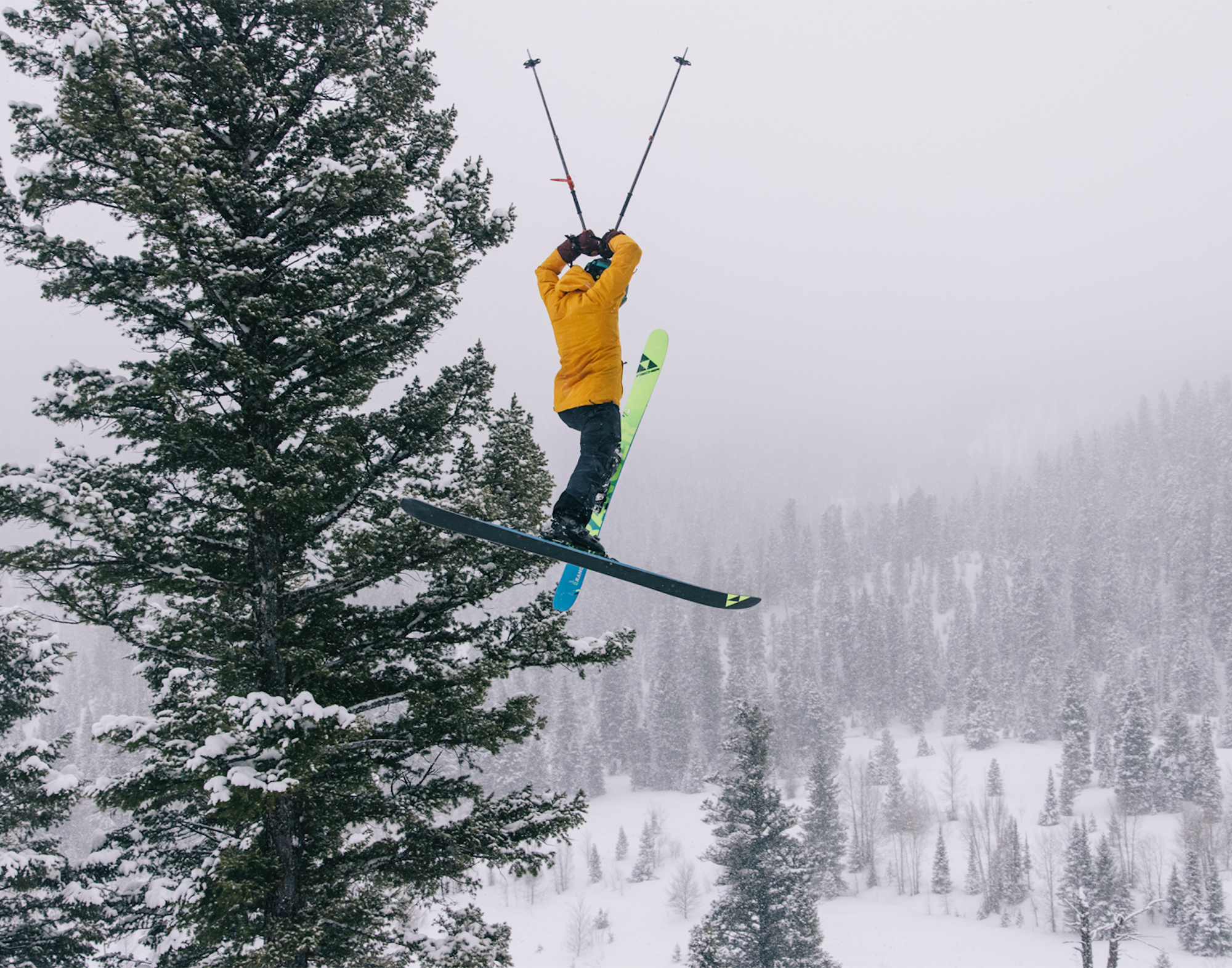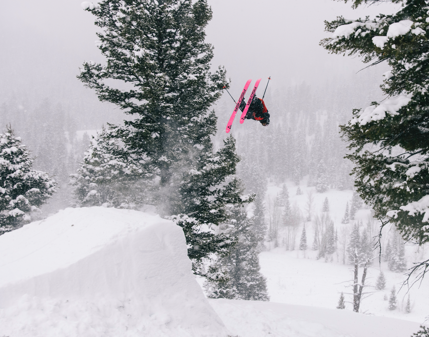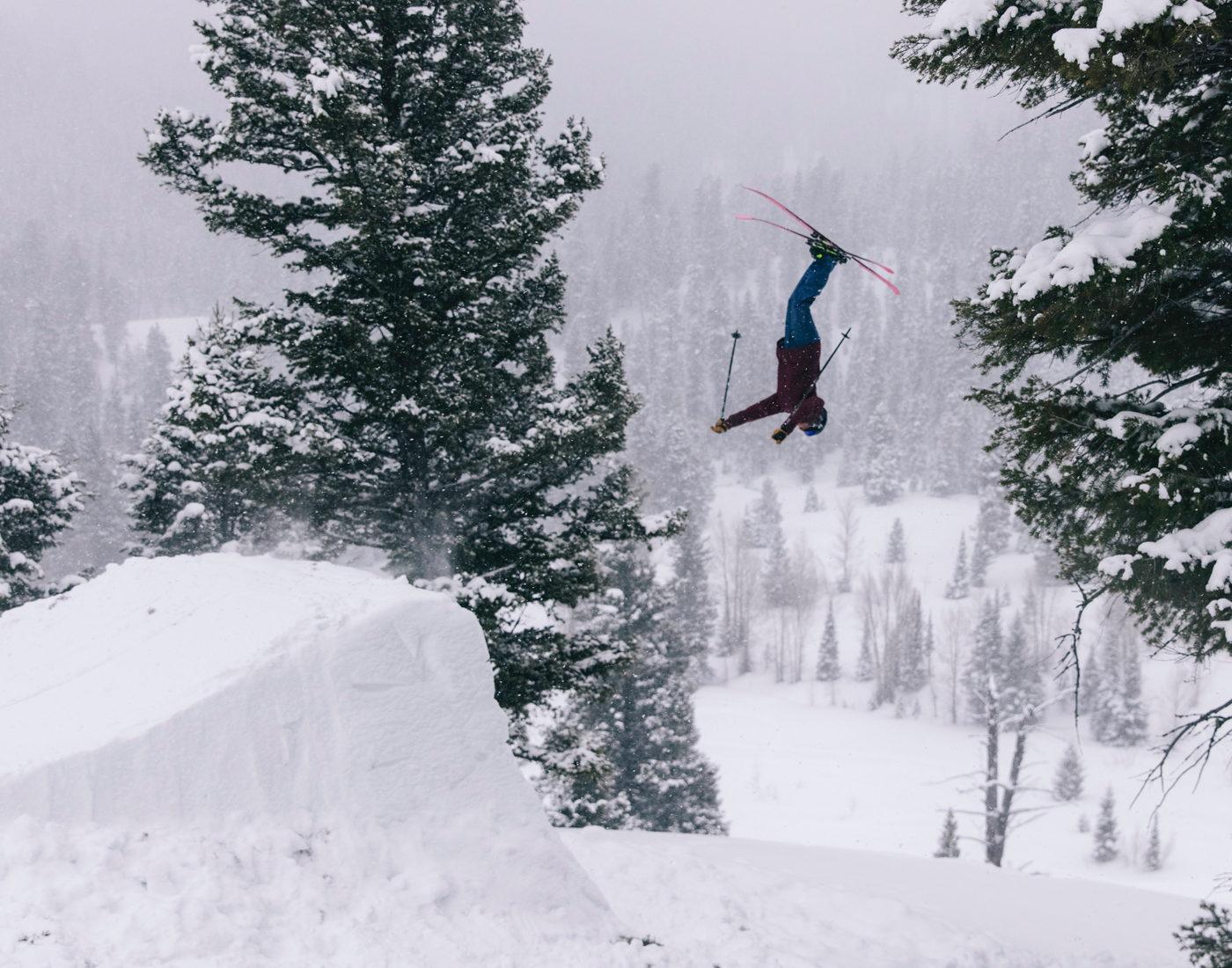 With snow still falling, the group agreed that larger and more technical lines were off limits. Calling an audible, we spent the afternoon building a huge, 60-foot jump and testing our nerve one after another.