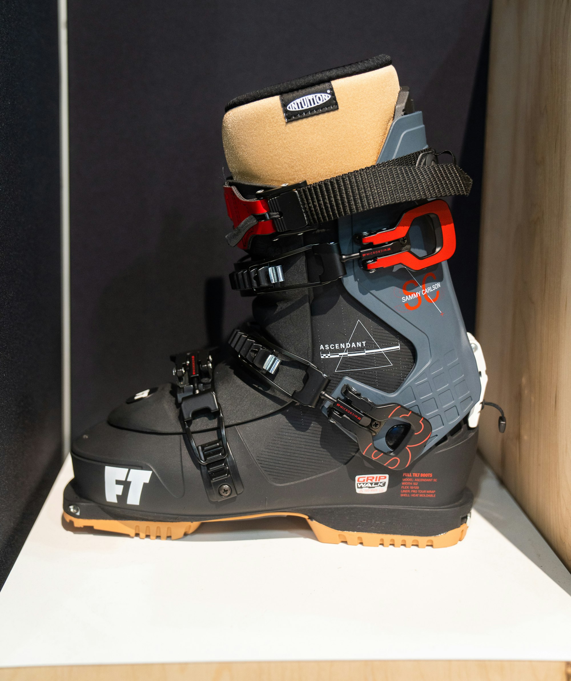 Full Tilt has a brand-new partnership with Sammy Carlson and a pro-model boot to go with it. As part of the Ascendant series, the Sammy Carlson boot is made specifically for Sammy C’s distinguished style: full-time, full-throttle. A TPU shell and grilamid tongue combine for incredible rigidity without added weight, and its 120 flex offers a bit of give for those who don’t want the stiffest response. A burly power strap provides total control on everything from backcountry pillows to enormous booters. Paired with the Intuition Pro Tour Liner and a Grip Walk sole, these boots are made for big walks.