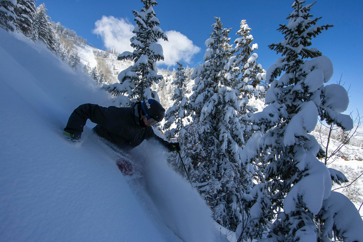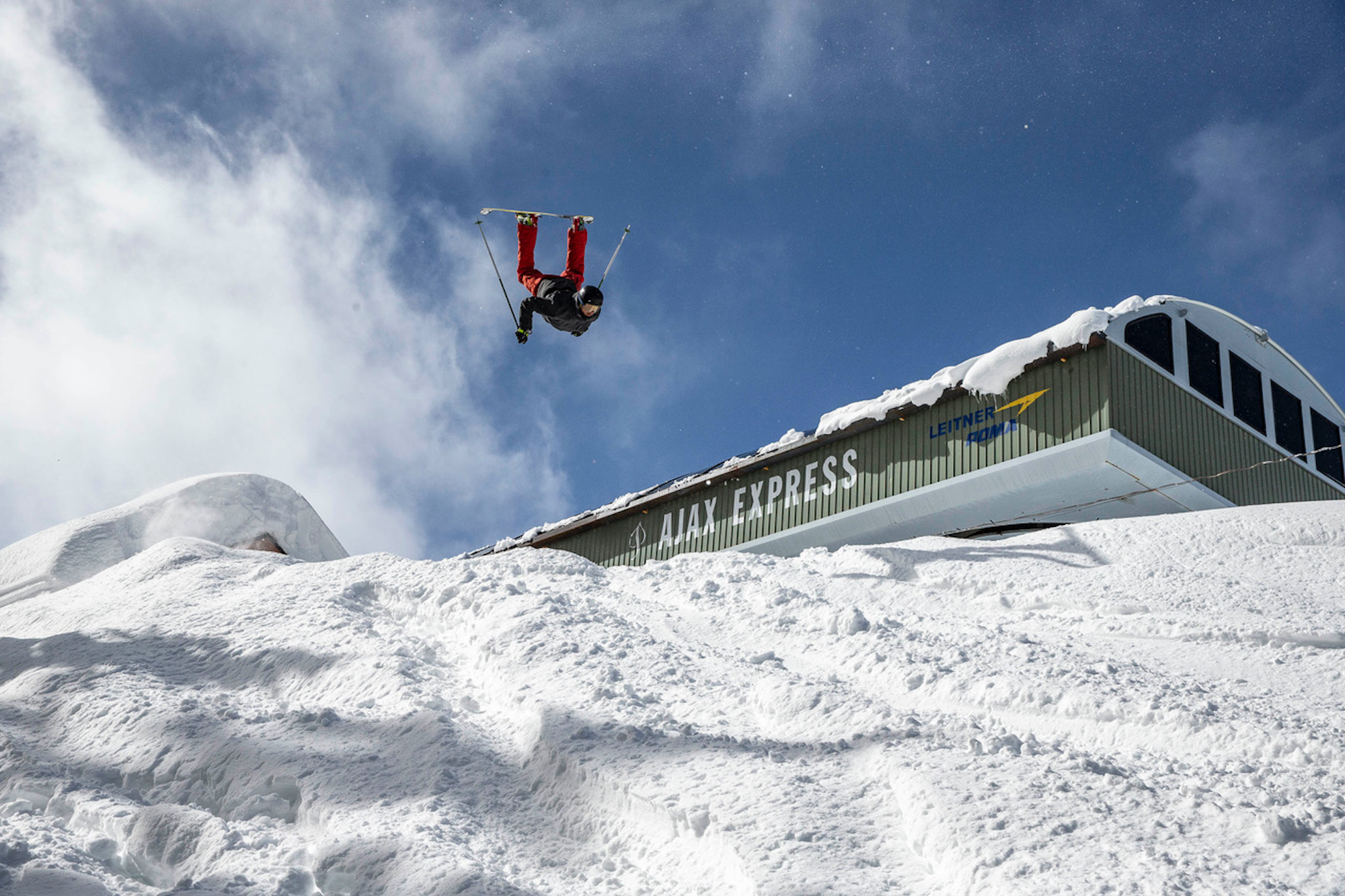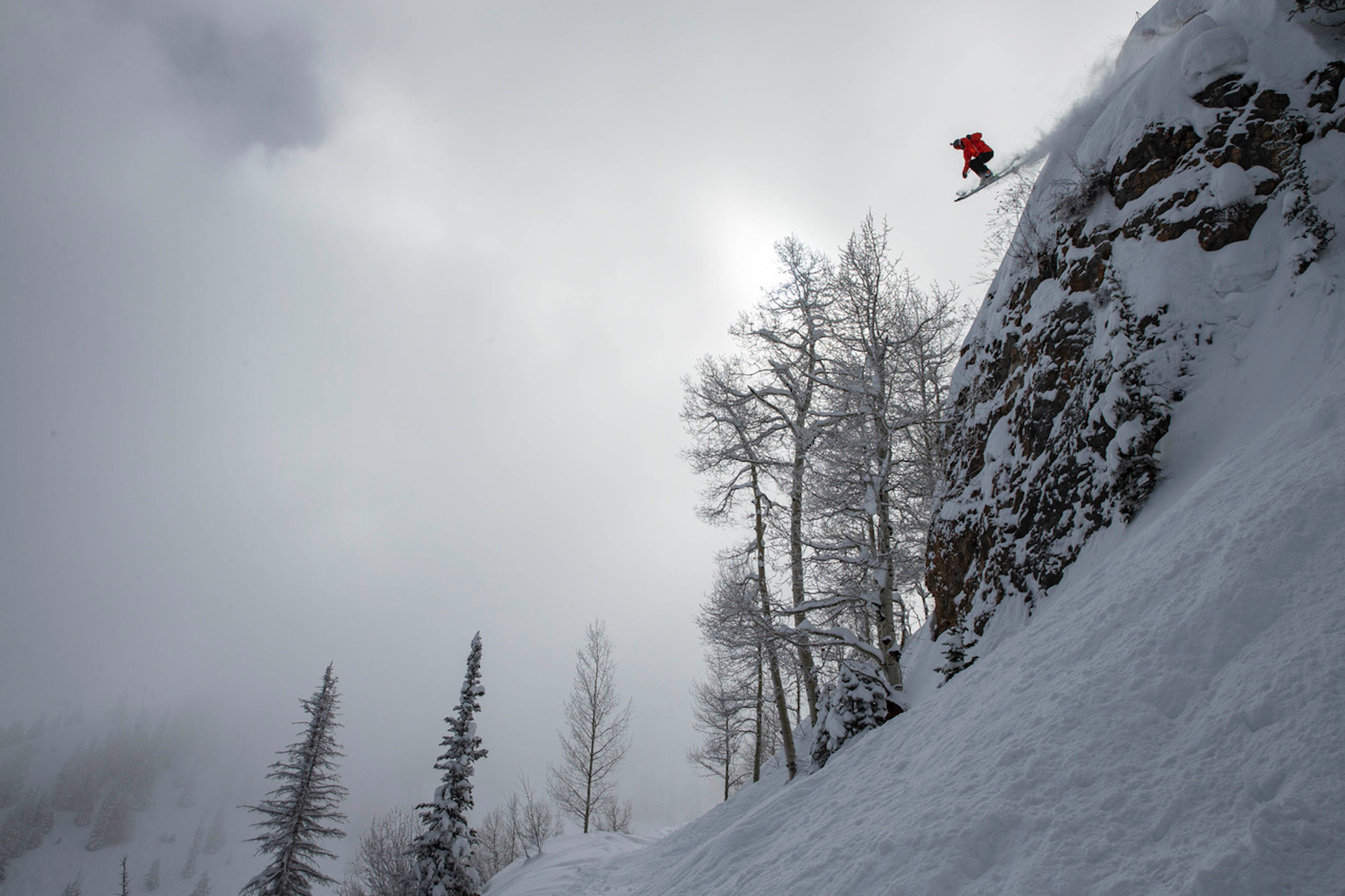 Boosting the legendary S1 Cliff inbounds on Aspen Mountain.