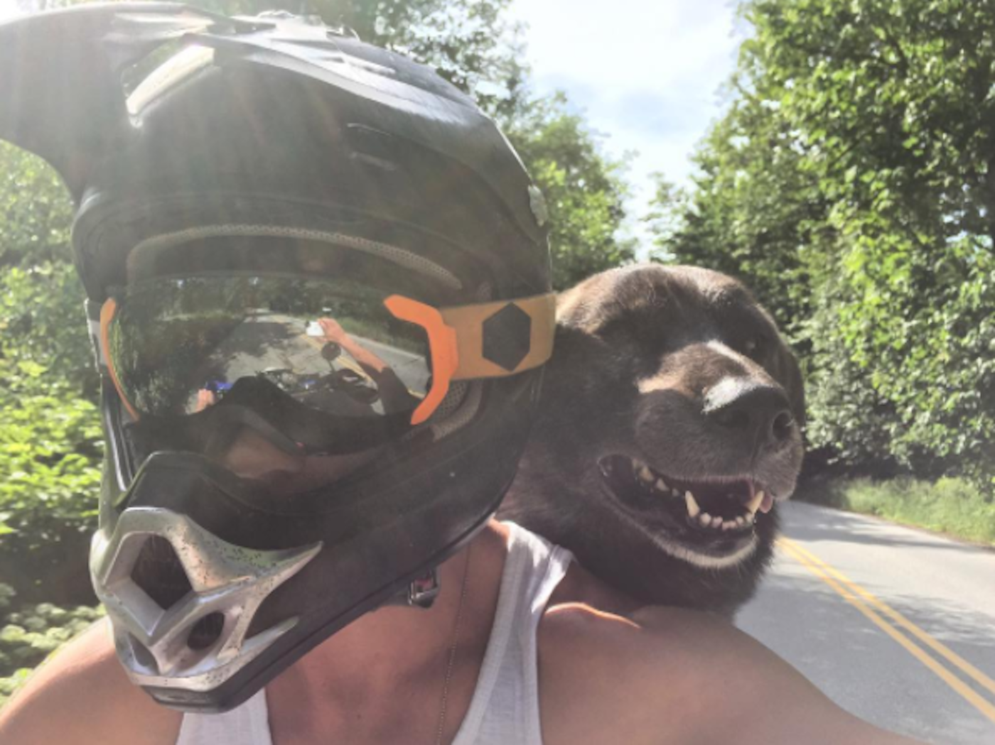 “I wouldn’t say I own Dex. She’s more like my best friend. But she calls the shots,” Bushfield says of his relationship with his furry sidekick. Sarah Burke, Bushfield’s late wife, found the pooch on a reserve in Pemberton, British Columbia, and brought her home as a surprise. Bushfield was couch-ridden while nursing a concussion and Dex was just three weeks old, suffering from an ear infection and mange. “Bushy” looked at her through a punch drunk haze, cross-eyed and confused, and fell in love. They’ve been the best of compadres ever since.