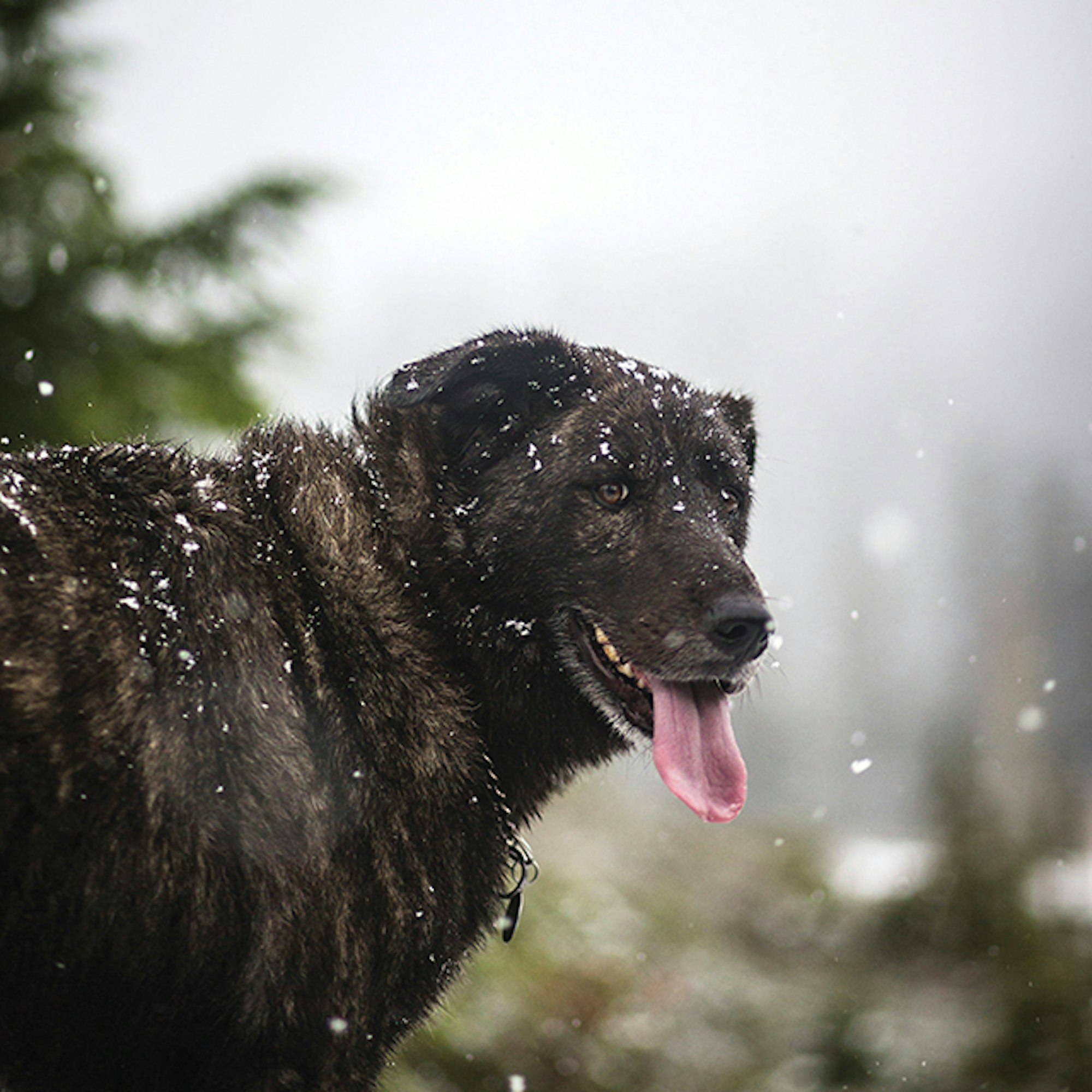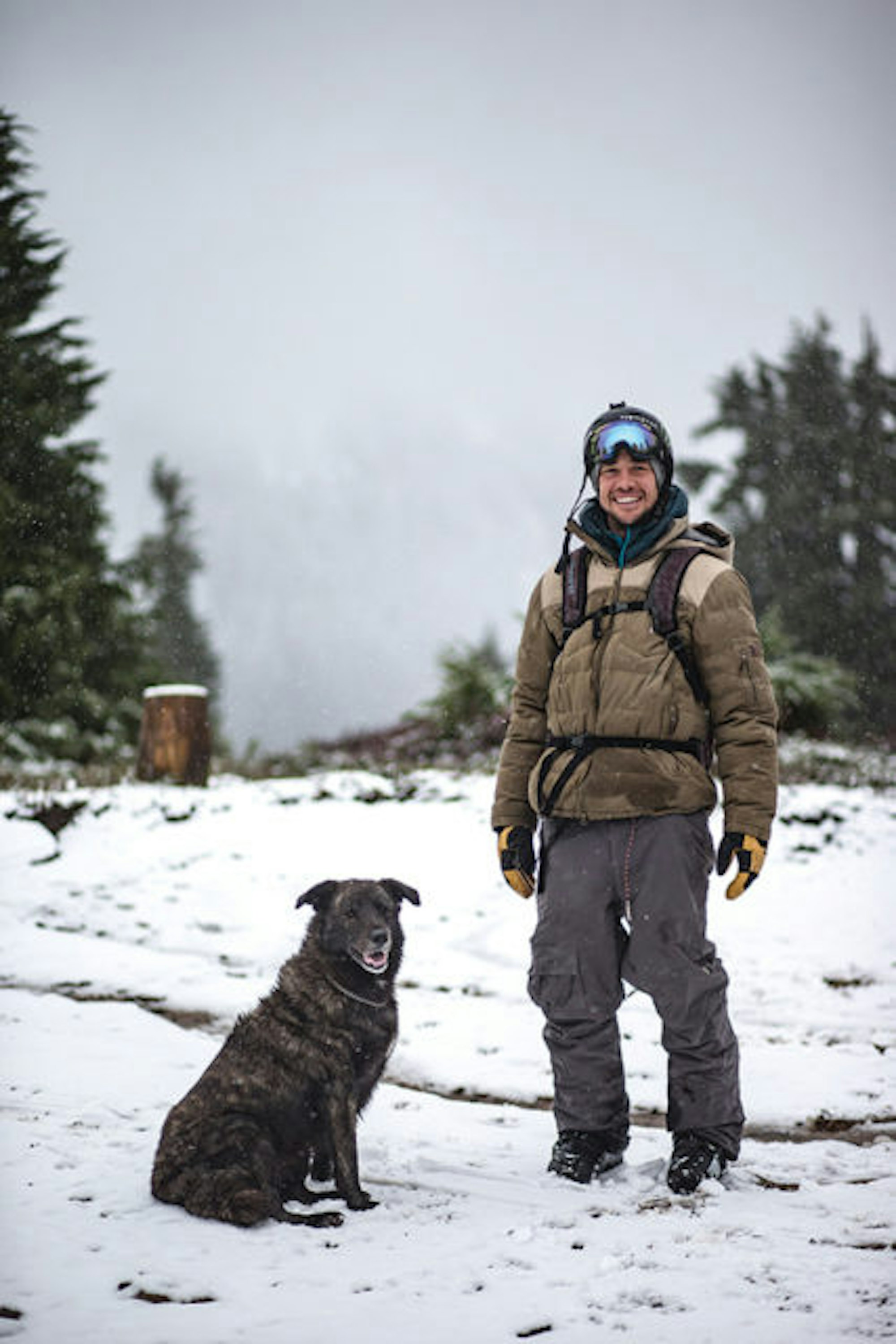 While Andy Parry, star of the Line Traveling Circus, was in Australia, his fiancé Emily Tidwell decided their household, already overrun by furry feline friends and crusty ski socks, was in need of a dog. Enter Cora, now a standard two-year-old puppy—meaning she’s crazy and always buzzing with energy. Cora begins each day by rounding up Parry and Tidwell’s two cats and sneaking some of their Fancy Feast. She is a devoted skier and accompanies her two best friends on wintertime adventures. Tidwell, a pro photographer, often takes Cora with her on photo shoots, which explains Cora’s insanely charming, high-end Instagram account.