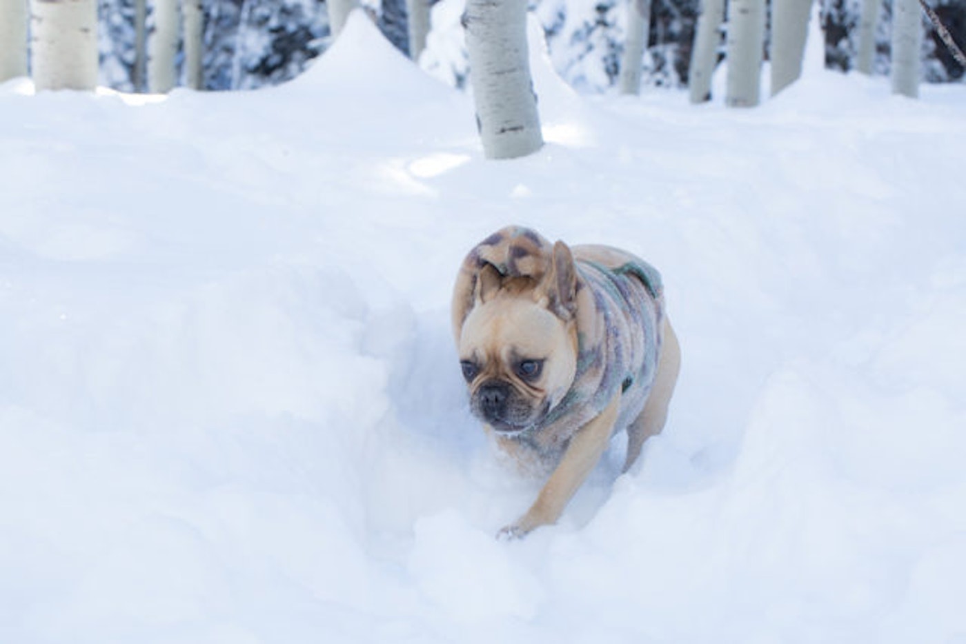 Slim is a very strange and special dog. He is constantly sleepy and possesses a permanently calm demeanor. But, when triggered by his humans returning home or proximity to doggy friends, his “chillness” is interrupted by short and extreme bursts of energy. According to slayer of insane backcountry lines, Parker White, Slim’s primary household duty is comic relief, which comes naturally because of his “salamander-like body and alien brain.” Slim has gone snowboarding through lightning storms in the Rockies and broken up woodland hippie séances in the Sierras. Because Slim loves the snow but Slim hates the hippies.