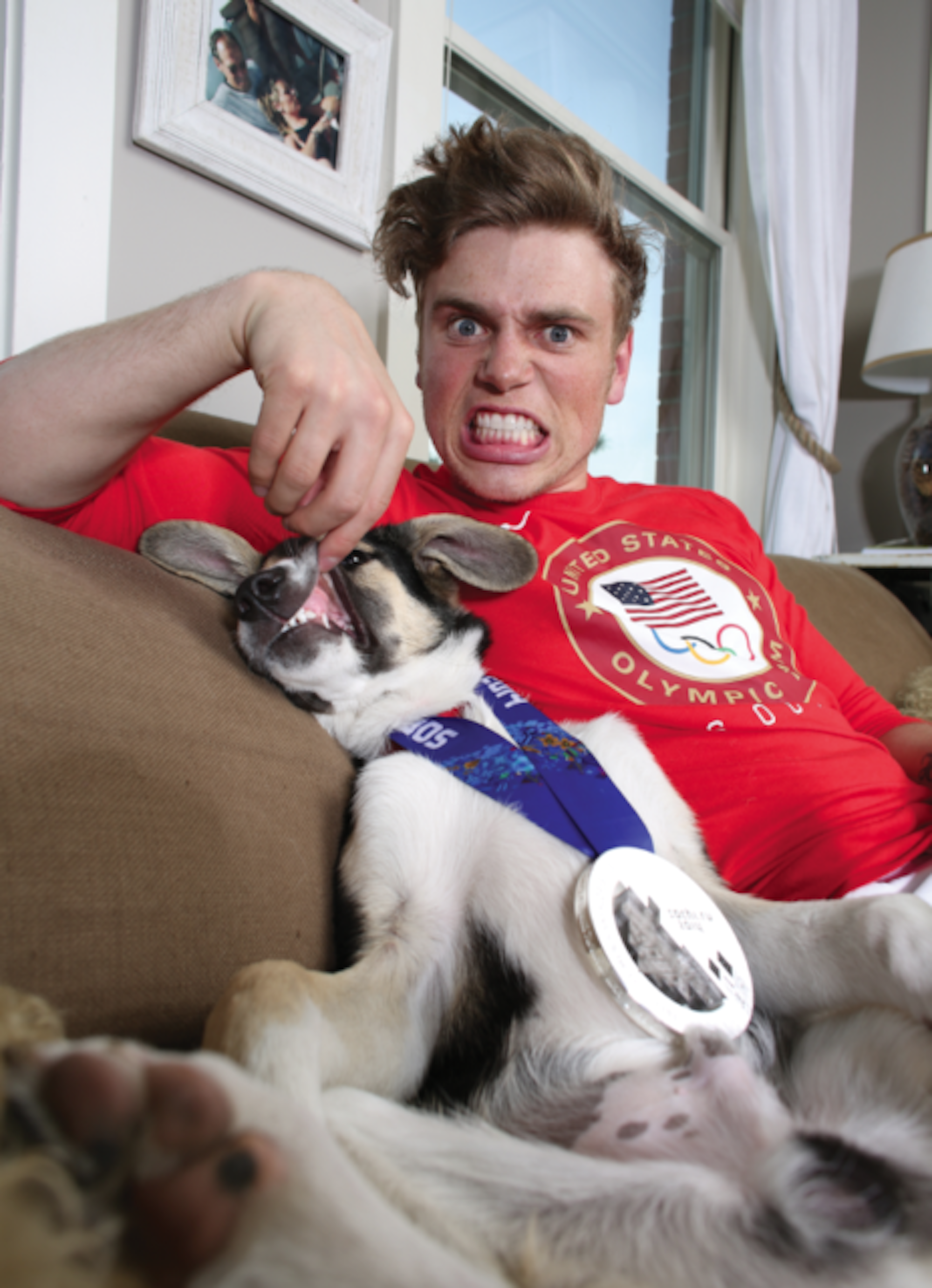 After injuries sidelined him last winter, Olympic gold medalist Joss Christensen decided he needed a pick-me-up. Since he was on crutches, Christensen chose to forego his desires to take up Capoeira—the art of Brazilian dance fighting—and get a pup. He quickly fell in love with Luna, who he credits with staving off the physical therapy blues. Luna loves to help Christensen polish his Sochi-branded medal but her favorite hobbies are taking selfies with her tongue out, chewing on anything and ignoring her owner when he calls. She’ll be traveling with Christensen all winter and is psyched to sniff international (canine) butts.