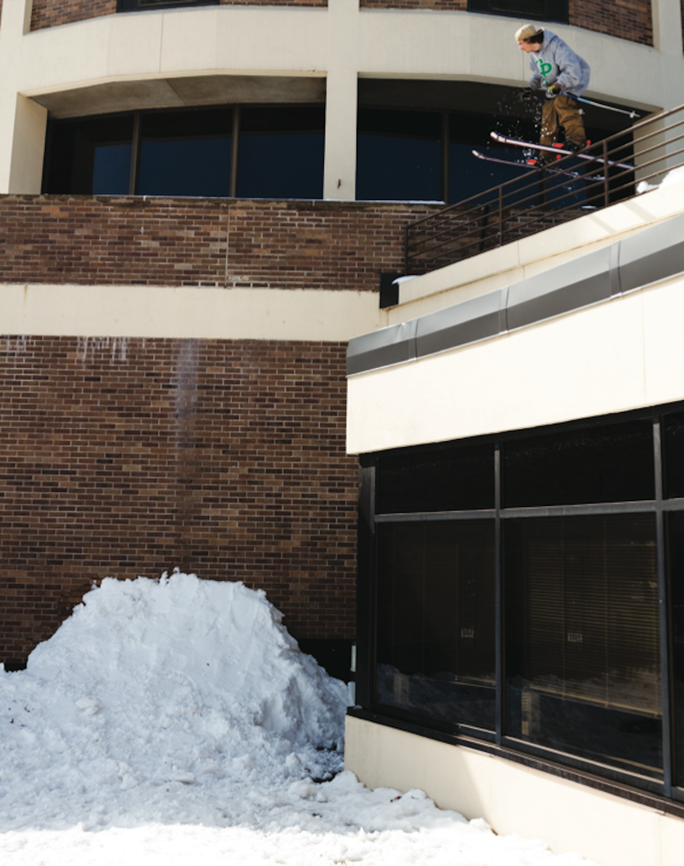 I got some inspiration from Alex Martini, he had done some different stuff. Optimistic by Absinthe was one of the first films where the majority of the urban featured wasn’t done on down rails or dub kinks. It was all kinds of wall rides and gaps. I was like, there’s definitely more to this than learning swaps and two-ons, and I had the ability to do that. In the past I had focused on the technical aspects—throw another switch up in there— rather than just to ski well, be solid on my skis on varying terrain. That’s what the stuff that people are doing now displays. As the director of our film, and as a skier myself, I just want to show what I’m capable of.