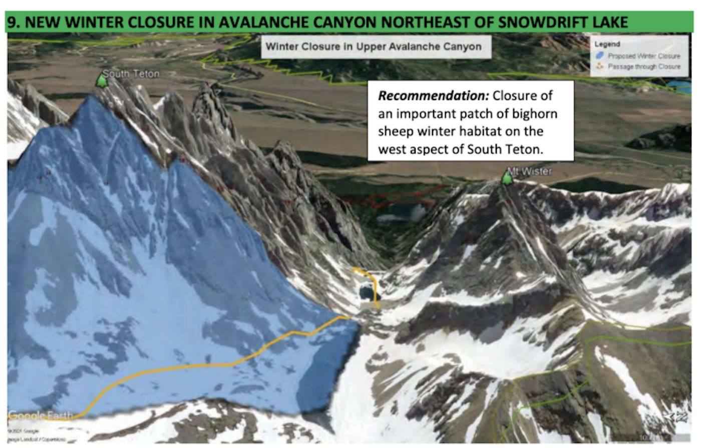 According to the Working Group’s document, the public identified 28,628 acres considered valuable for skiing. As a compromise, the proposed closures would only impede on nine percent of that skiable terrain—if all of the proposed actions were actually implemented. Areas like Granite Canyon, Garnet Canyon, Mt. Moran, Baldy Knoll, Taylor Mountain, Albright Peak, Wimpy’s Knob, 25 Short and the East Faces above Jackson Lake would all remain open during the winter months to prove the collaborative nature of the program.