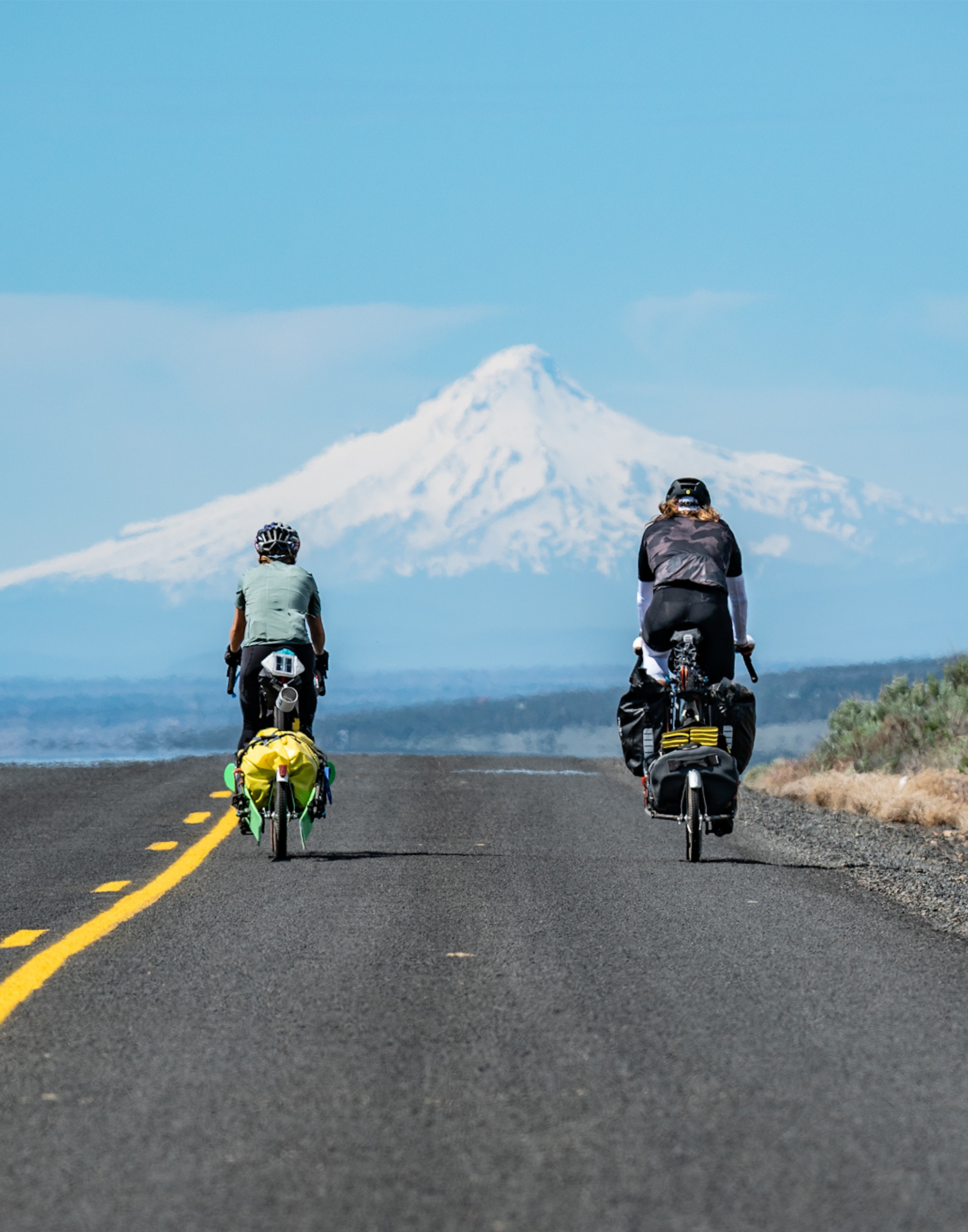 The big question for all of our decisions was how to do this responsibly during the pandemic. This meant things like not stopping at restaurants or gas stations and, instead, keeping as much food as we could in the van. We did one grocery stop in Bend and then quickly continued on—that was it. This isn’t really your typical bikepacking formula, but it was the right thing to do. As far as gear, I rode a Specialized Diverge gravel bike and navigated the full trip with a Garmin computer, pulling a one-wheeled trailer behind me with all my clothes, camping gear and ski mountaineering gear.