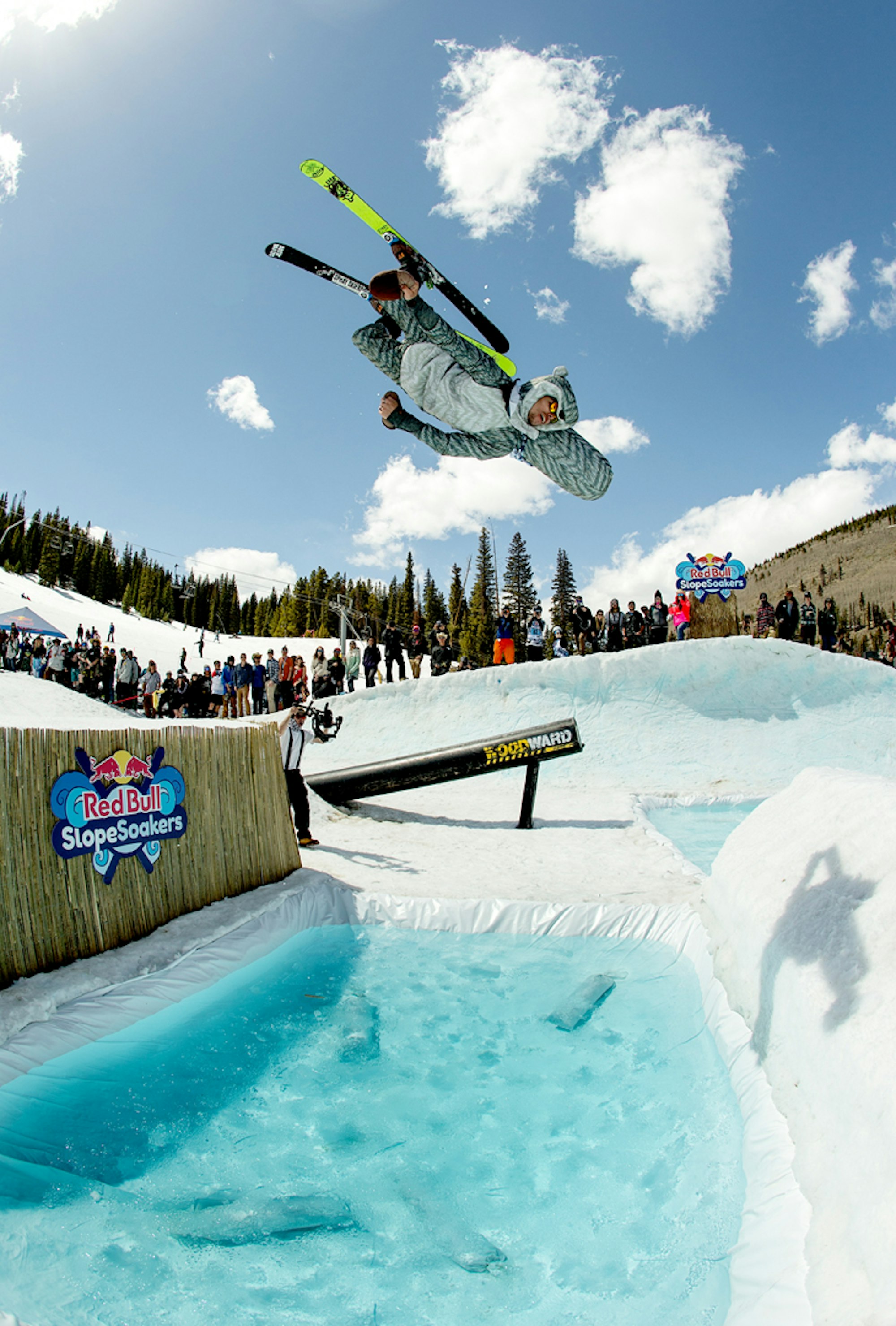 It’s springtime, the weather is warm and sunny, the snow is turning into mashed potatoes and the only thing missing in this equation is a proper pond skim to close out the season on a high note. Enter: Red Bull Slopesoakers, a one-of-a-kind rail jam and pond skim combination, goin’ down this April 15 at Copper Mountain.