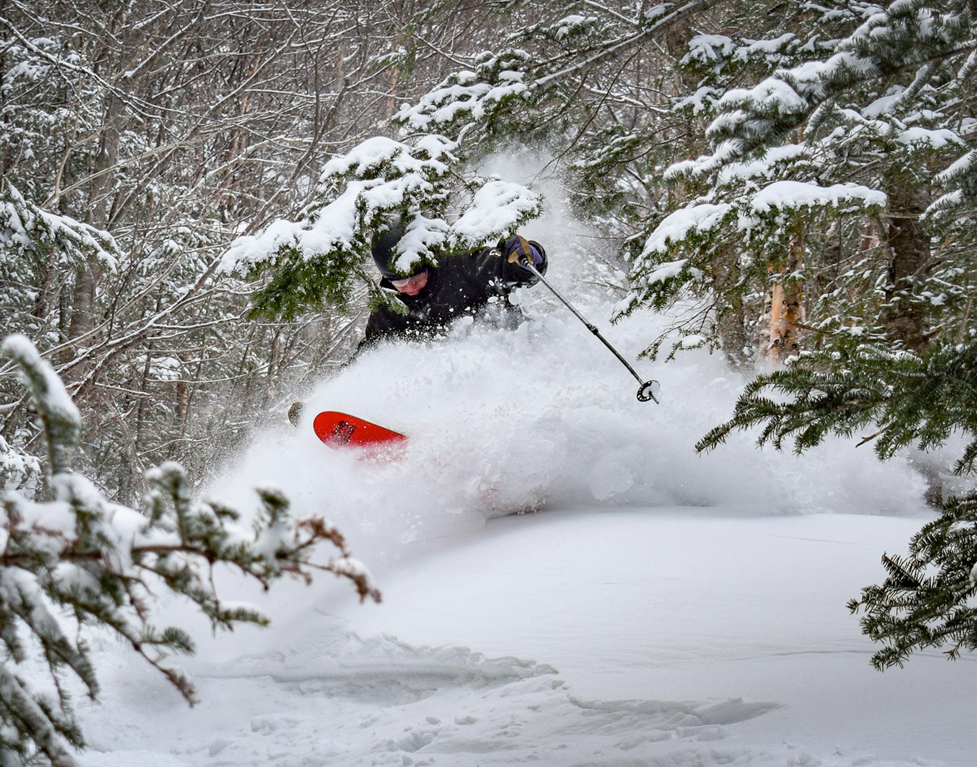 Over the hill and through the woods, Attitash is another must-ski staple in the Whites, offering a little more variety and resort amenities. Because it’s not as tightly regulated as Wildcat, there’s more lodging, food and drinks at your disposal, and the terrain is a little tamer, with a variety of groomers ready to rip for all skier levels. But, don’t be fooled. We’re still talking about the Whites. About a third of the mountain is considered expert terrain, which includes 60 dreamy acres of tree skiing.
