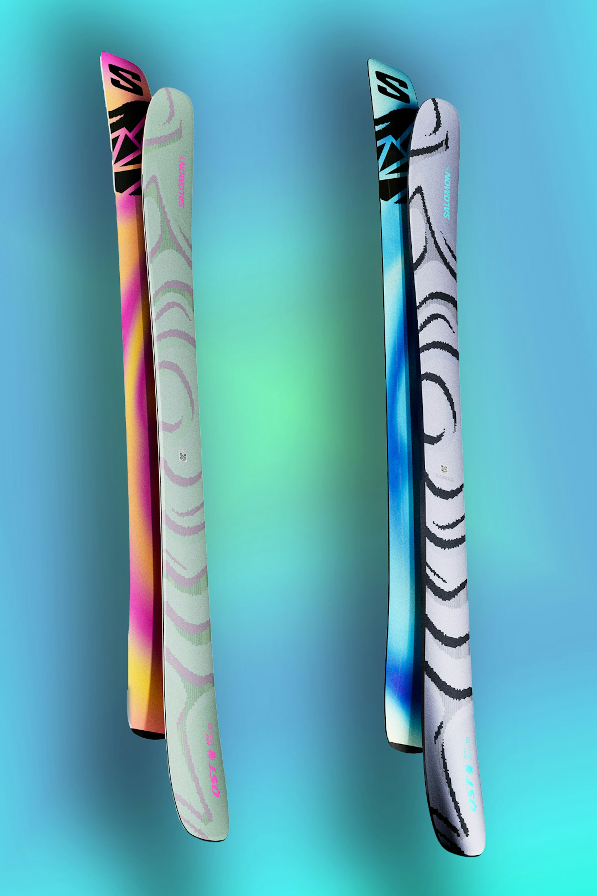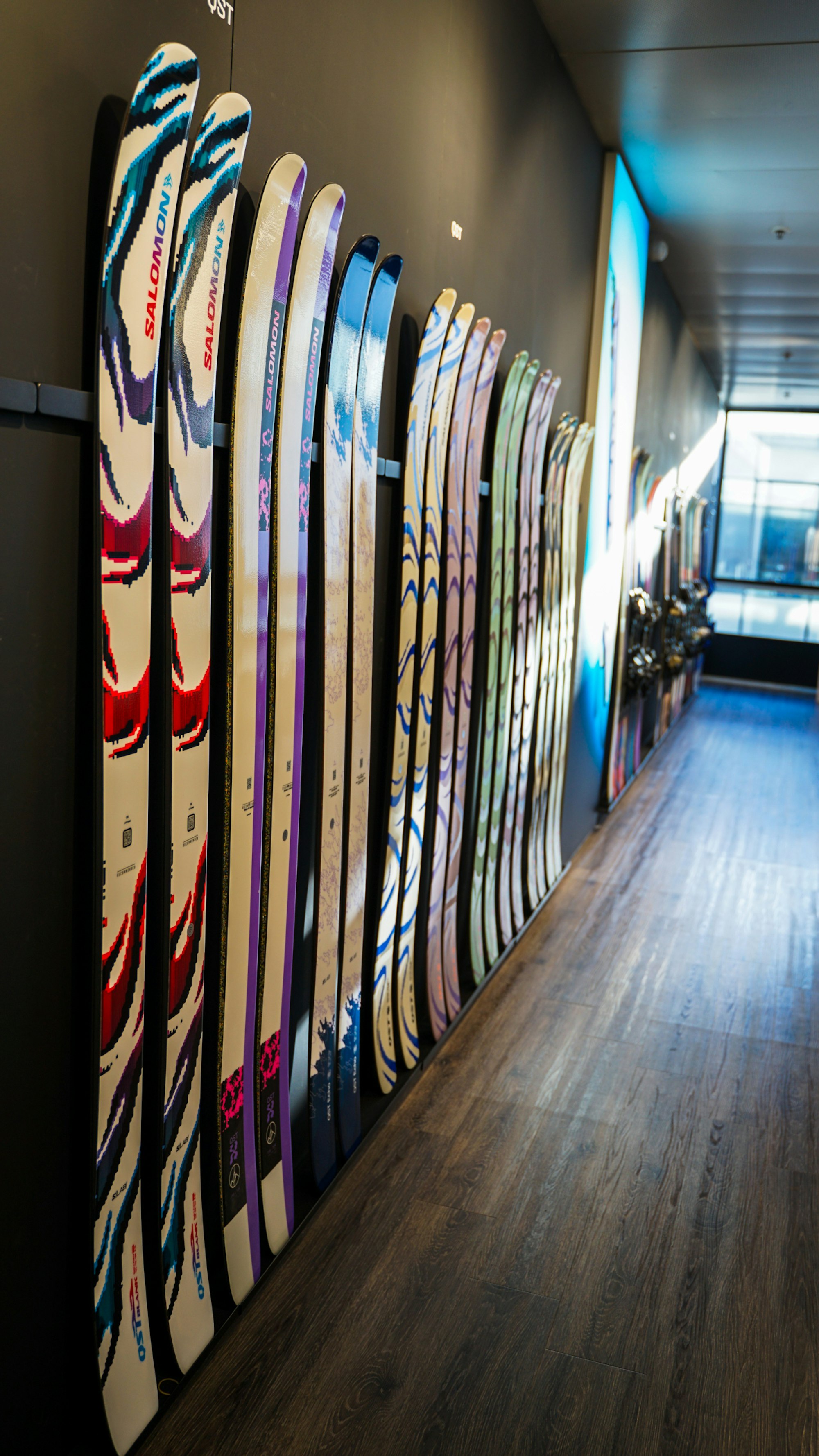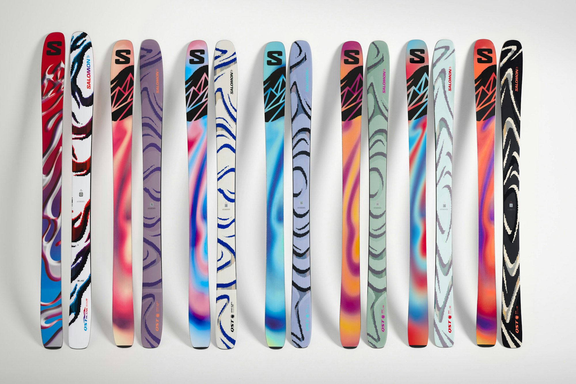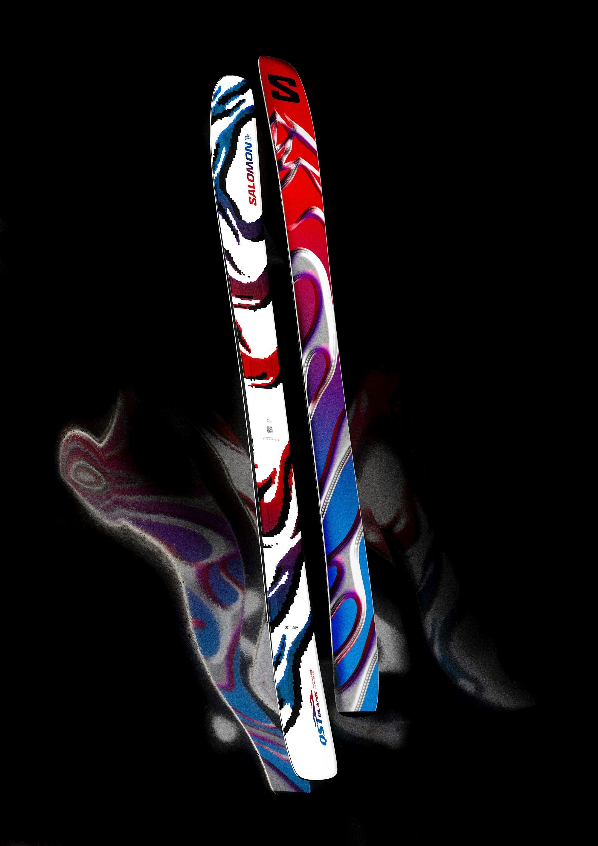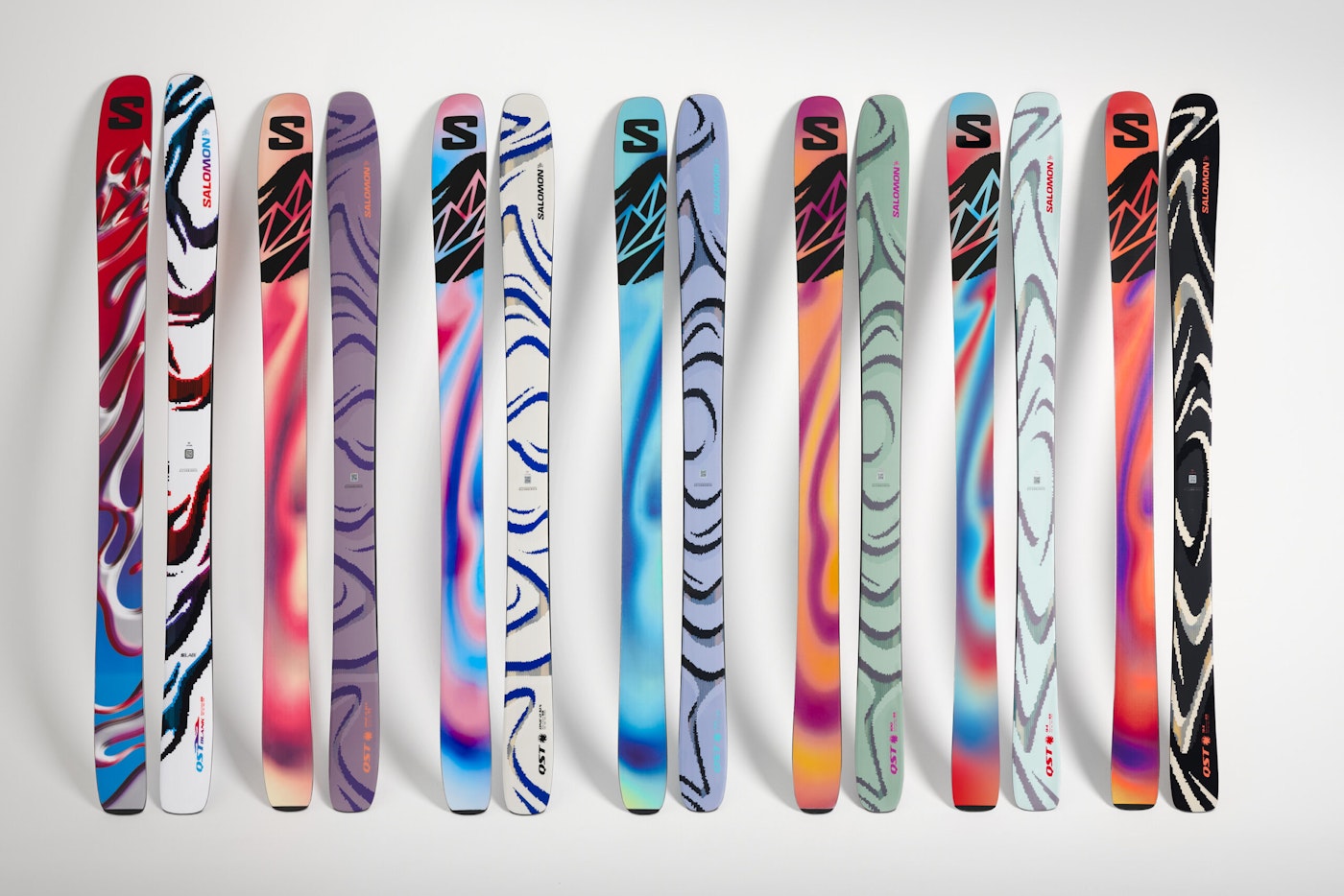 My jaw dropped at the sight of them… Slightly jet-lagged from arriving in Annecy, France, the night before, I was ushered into a meeting room with a large, U-shaped table dominating the space. On the wall to my left sat the 2026 Salomon QST Collection. It was immediately apparent that this was a new direction for Salomon. Each model was adorned with a vibrant topsheet— a clear departure from the QST aesthetic of the past four years. The skis sport a youthful appearance with seven unique graphics in the collection, all featuring pastel colors and pixelated accent lines, providing a dynamic look, akin to ski tracks through powder or the outline of a storm cycle. After handling a few of them, it became quickly apparent that the new builds were completely different from the last generation of QST. The new Blank, QST 100 and QST 94 had the more notable differences from their previous models. The Blank felt stiffer when flexed and featured a larger turn radius, while the QST 100 gained two millimeters of waist width from the QST 98 and featured a more progressive shape. The QST 94 felt stiffer as well and had this squared-off, flatish tail. These updates to Salomon’s flagship freeride line were born in Salomon’s Annecy Design Center, one hour south of Geneva, Switzerland.