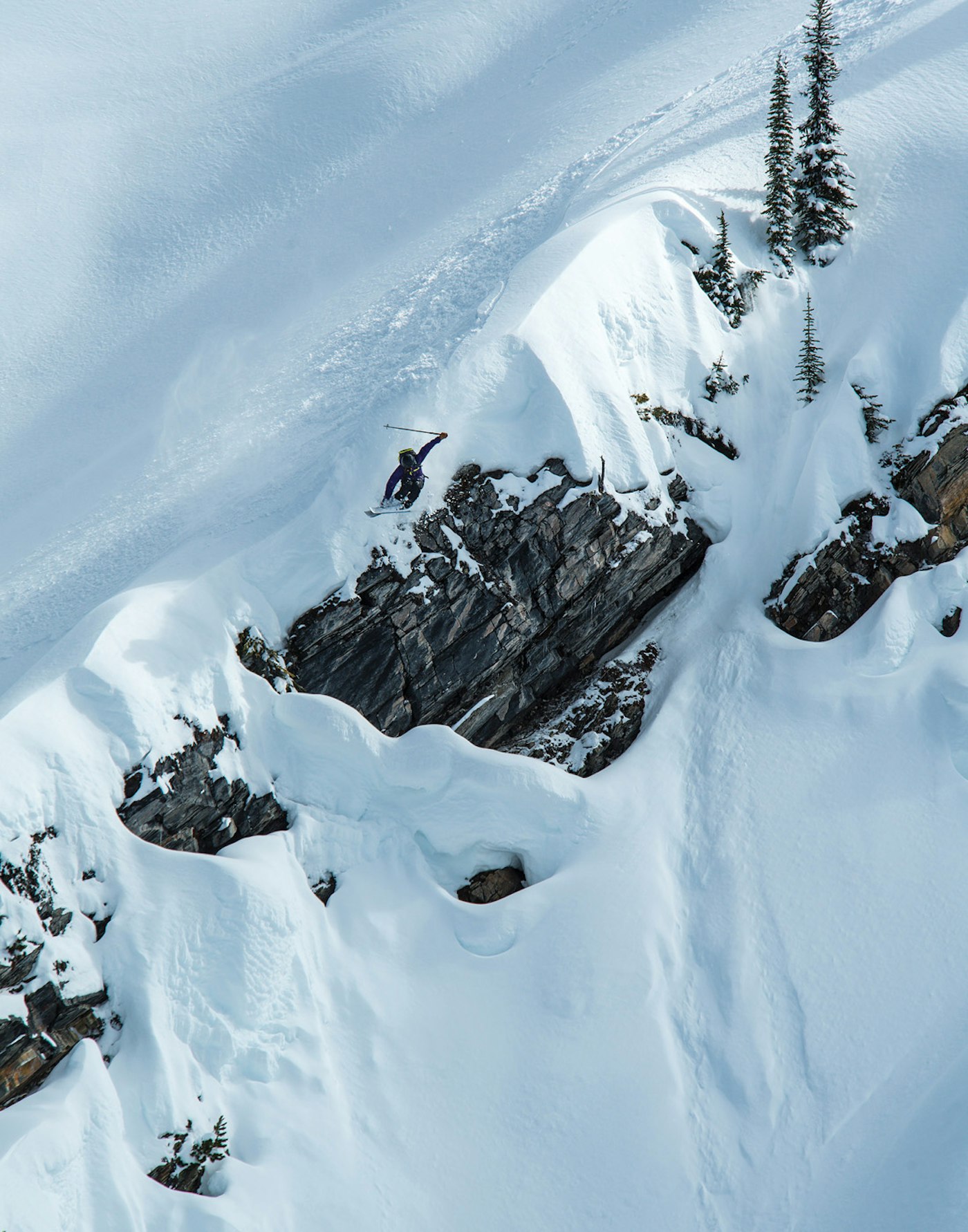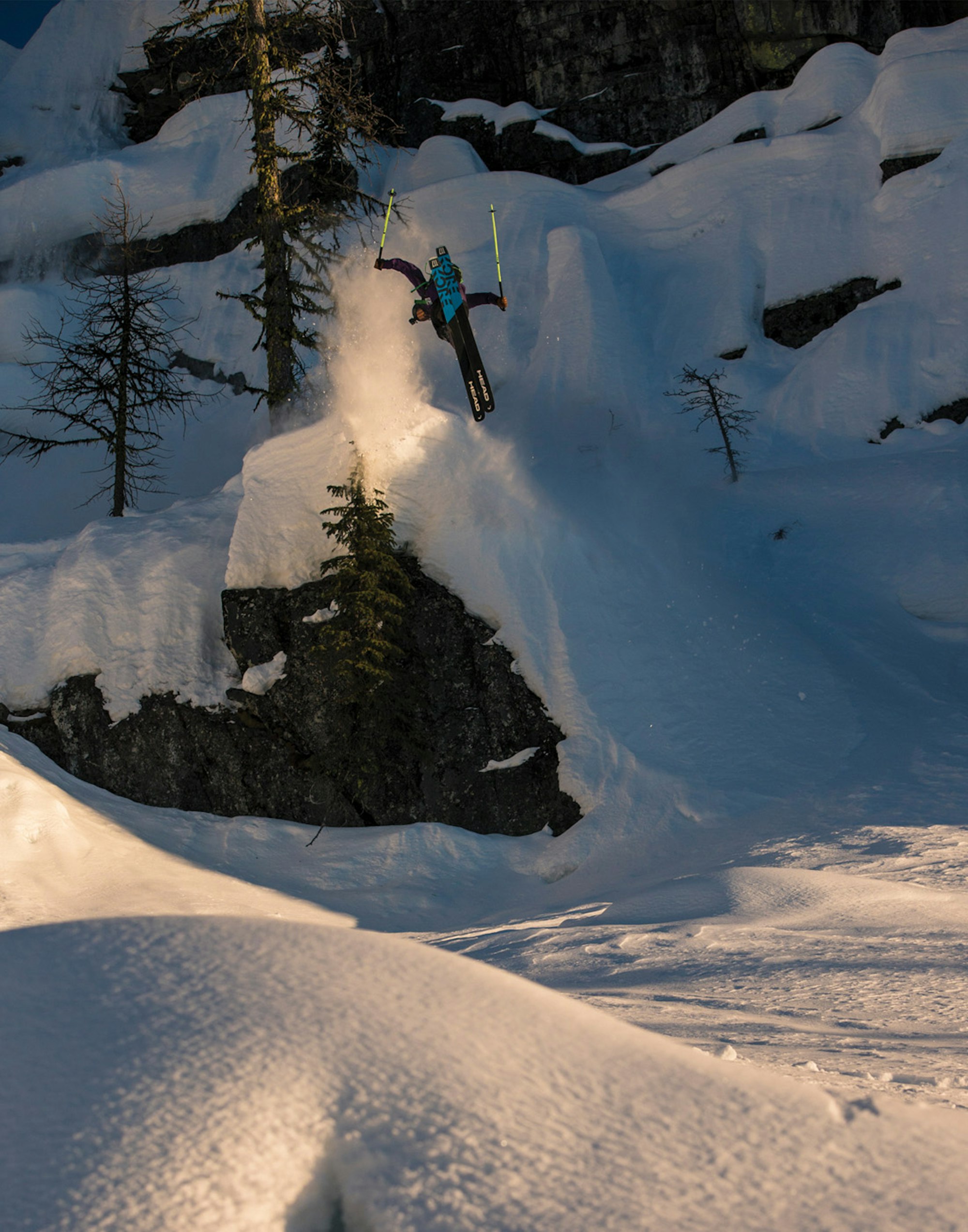 Tracked by MSP lenses, Sam toyed with his home terrain at Whitewater, launching massive cork 7s and backflips wherever he pleased and becoming the first skier to spin the iconic Prospector Cornice, a blind 40-plus footer into a near-vertical, fluted face peppered with rock.