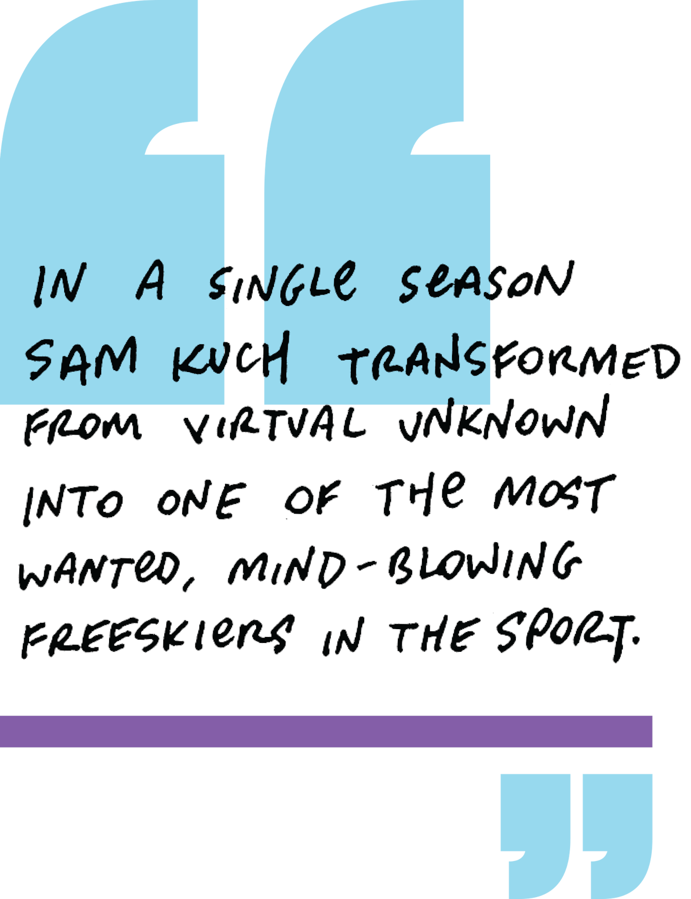 Any skier who surfed social media this past season was subject to the Sam Kuch onslaught; an unprecedented spin here, a massive natty rodeo 7 there, an improbable line or cliff flashed here, there and everywhere. He filmed with Matchstick Productions all season and threw down with Blank Collective, too, generating a seemingly endless stream of praise from legends like Mark Abma and Mike Douglas, guys who thought they’d seen it all. That is, until this 21-year-old phenom came along. Of course, the exploits, praise and meteoric rise all beg the question, ‘Who the hell is Sam Kuch?’