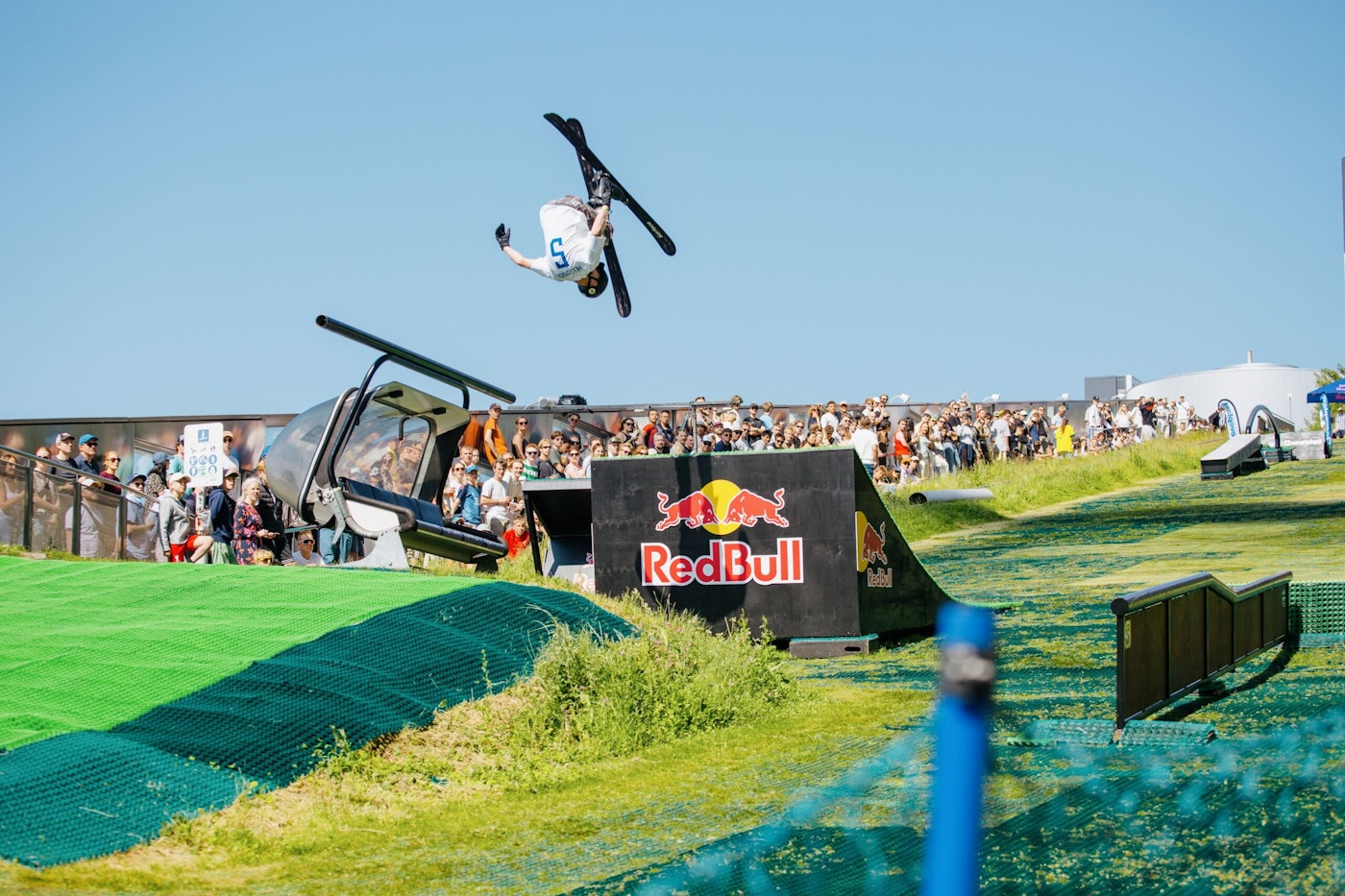 The insane skiing that followed, combined with live music, food and drink, and an afterparty for the ages, drew a crowd of 1,300 people to the Team Battle, a record crowd for the event! The ecstatic crowd had the pleasure of watching 12 of freeskiing’s finest duke it out in ideal Danish summer weather.
