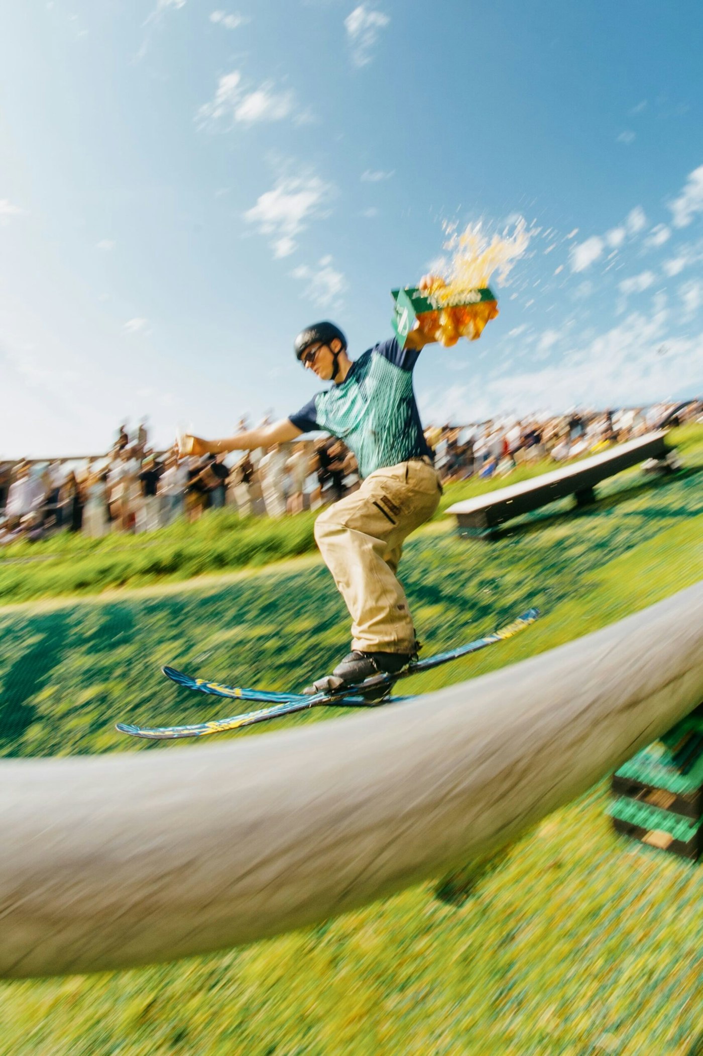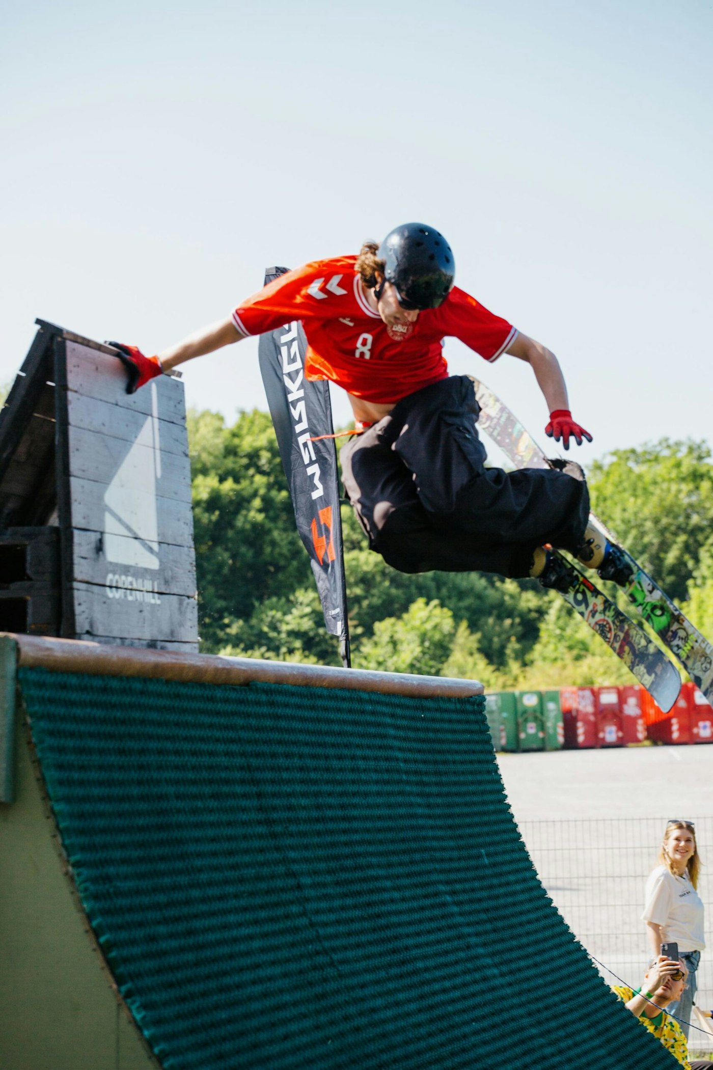 The weather could not have been more ideal. Warm temps and plenty of sun brought out the best in both the skiing and the crowd. Of course, a freestyle competition on a dry slope course comes with a lot of risk. Several athletes, including Team Denmark competitor and event organizer Jakob Ebskamp, were forced to take some intense bails. Nevertheless, the sends continued and the spirits remained sky high.