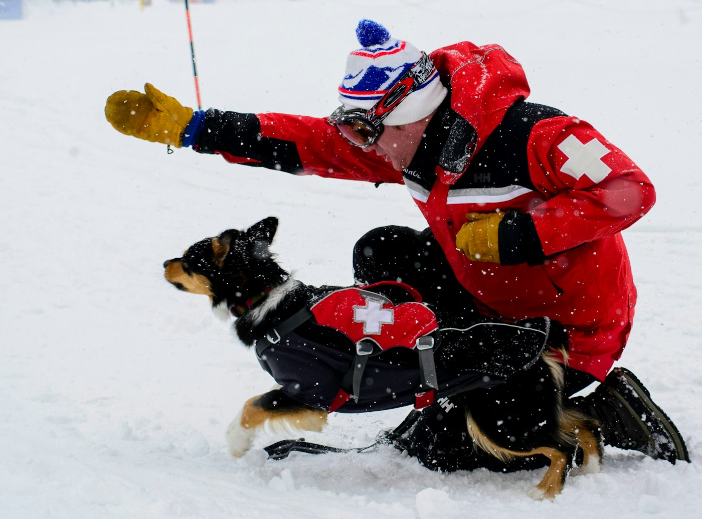 An avalanche dog in training with NSP. Dogs can be instrumental in helping to find individuals without a beacon who have been caught and buried in a slide | Photo: Courtesy of NSP