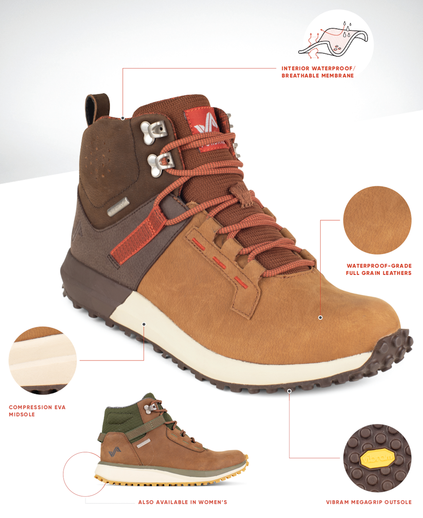These sneaker-boots look good, feel good and perform well for anyone looking to turn heads while getting after it outdoors. The kicks feature a Vibram Megagrip outsole for supreme traction and a waterproof/ breathable membrane that keeps you dry. Together, a compression EVA midsole and open cell polyurethane footbed work together to give you the cushioning you’ve always sought in a pair of shoes.