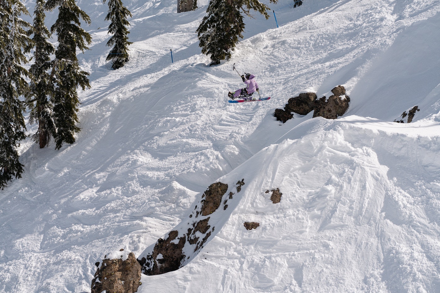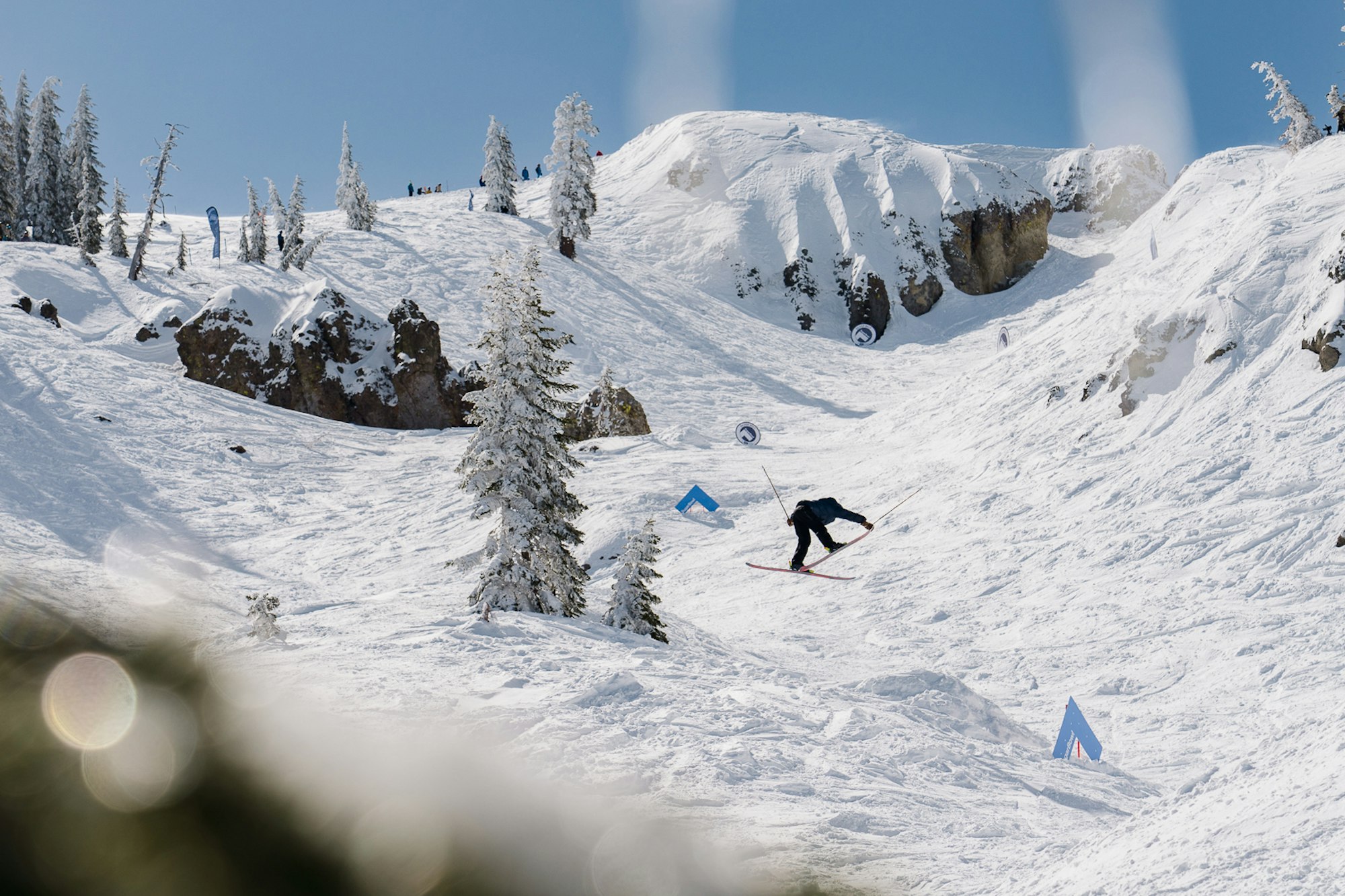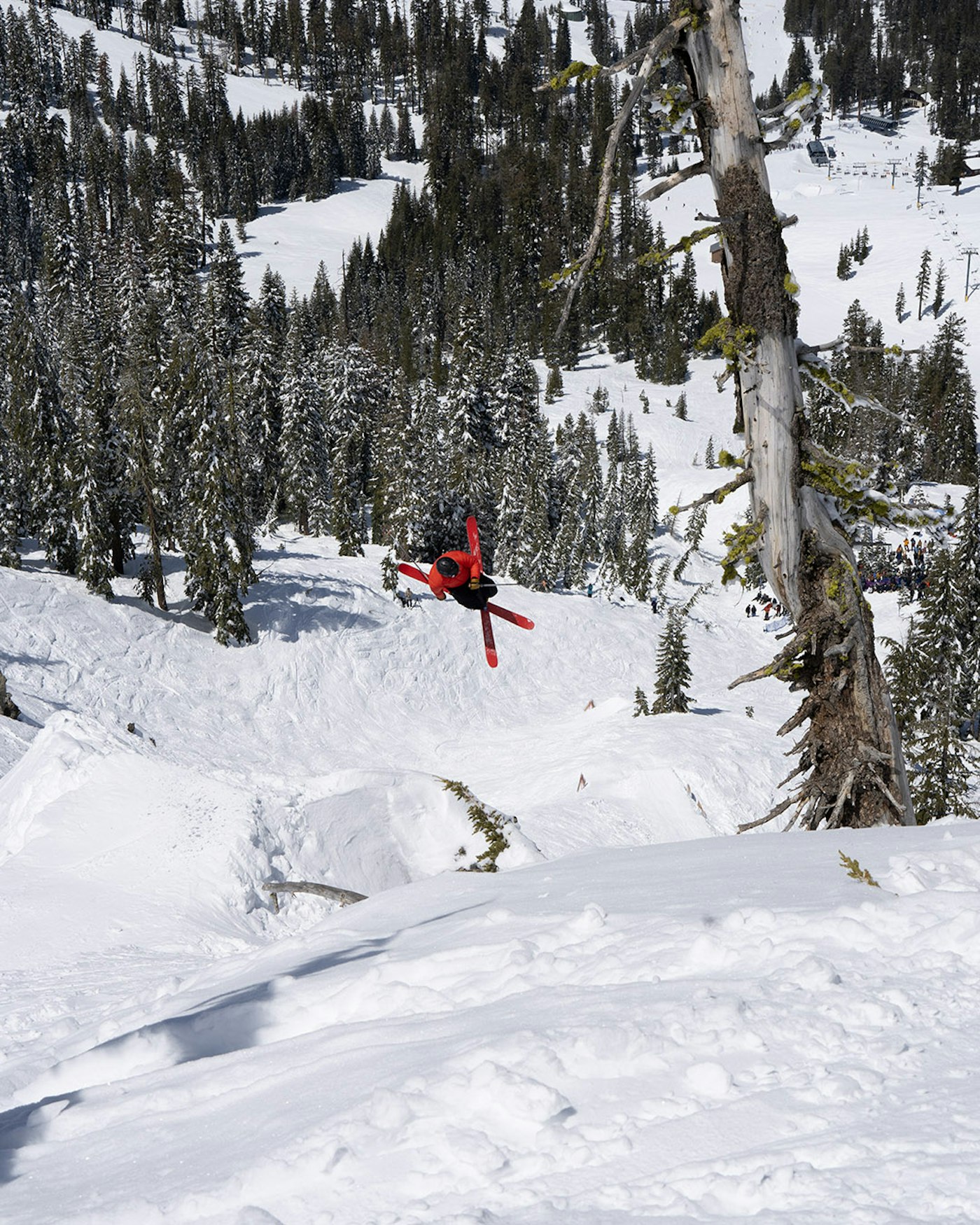 With shovels in hand, the crew hit the legendary Silver Belt Gully ready to build. The experience of forging a course and having a say in the layout of each feature is part of what makes The Silver Belt such a unique and rare opportunity for competitors. By Friday, it was time to enter the proverbial octagon, and the vibe was electric. California sunshine poured over the resort and the 15 female and 25 male skiers selected for finals headed for the start gate.