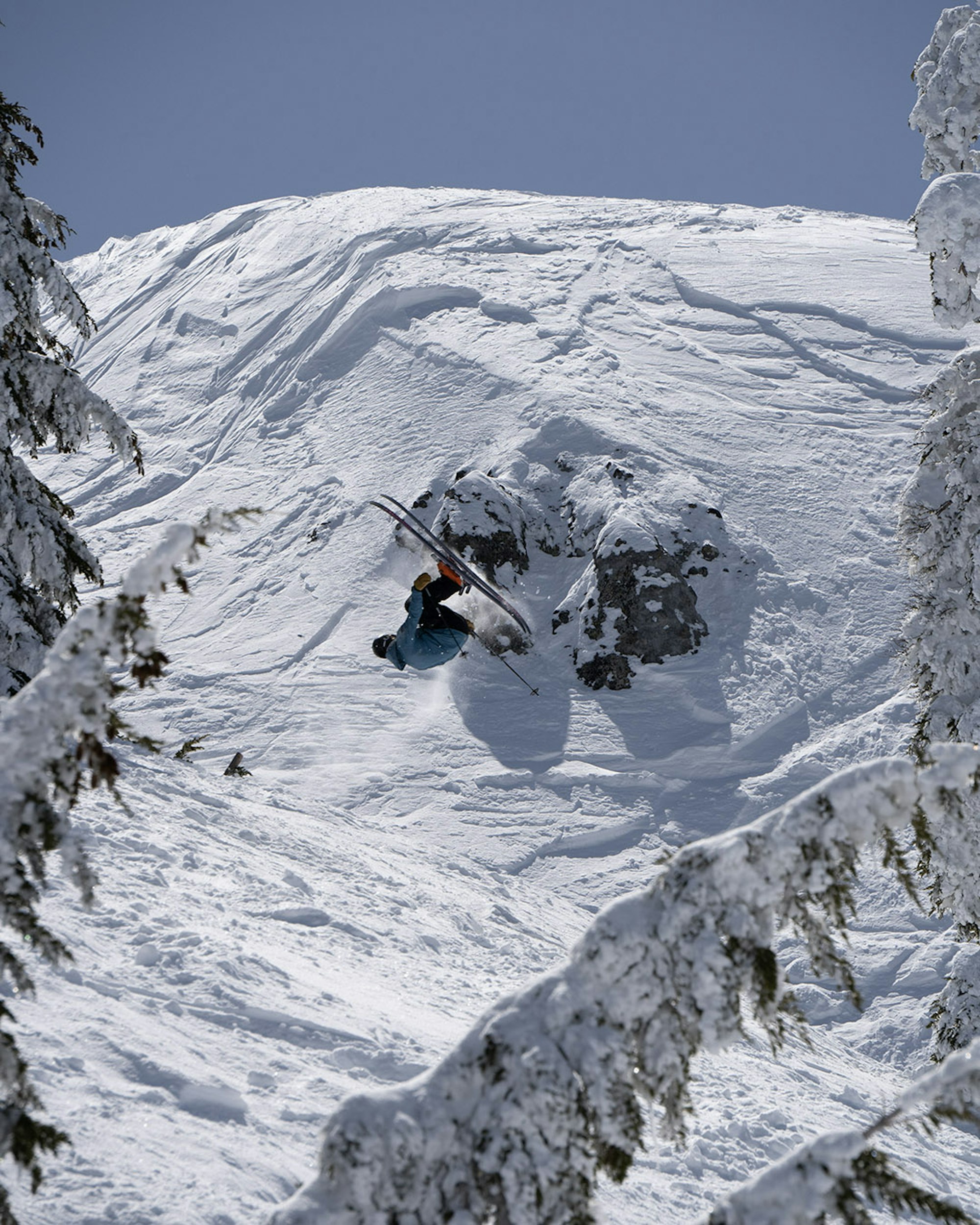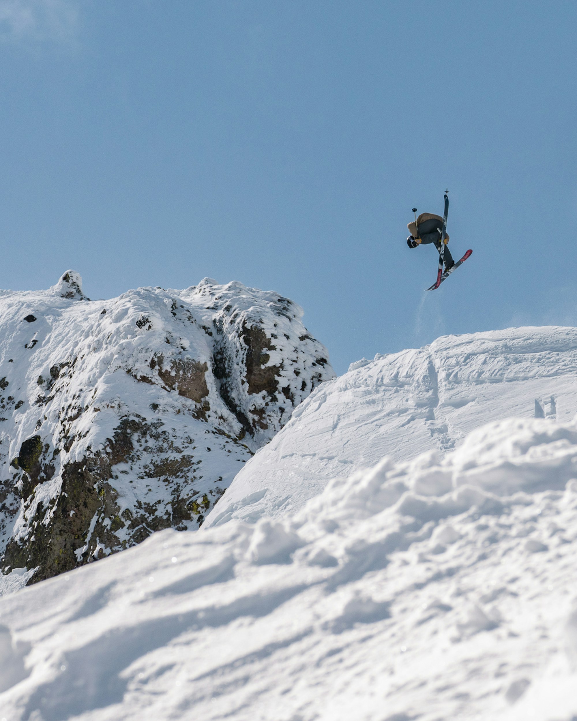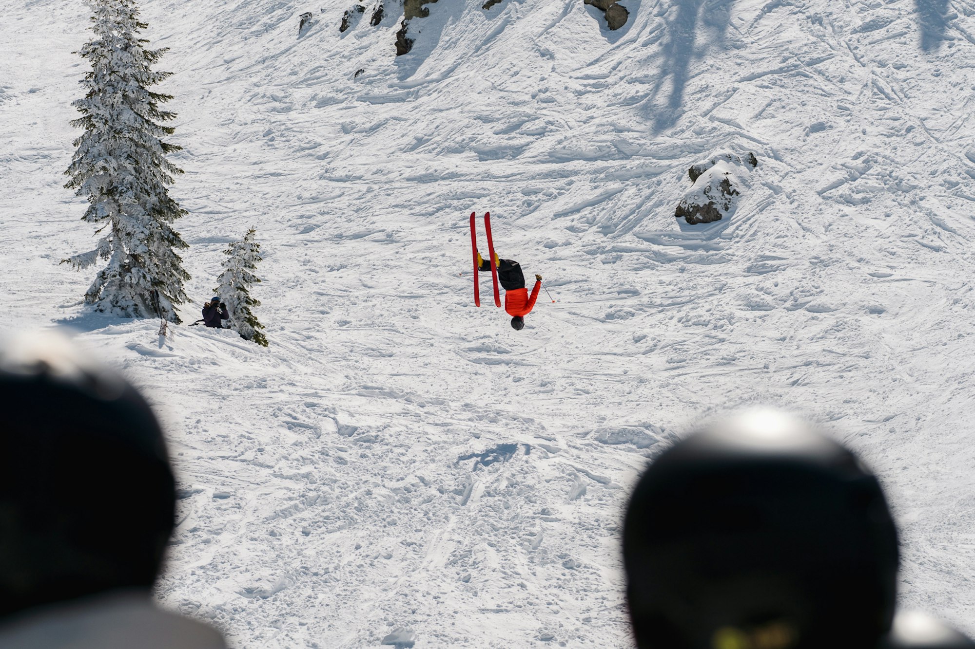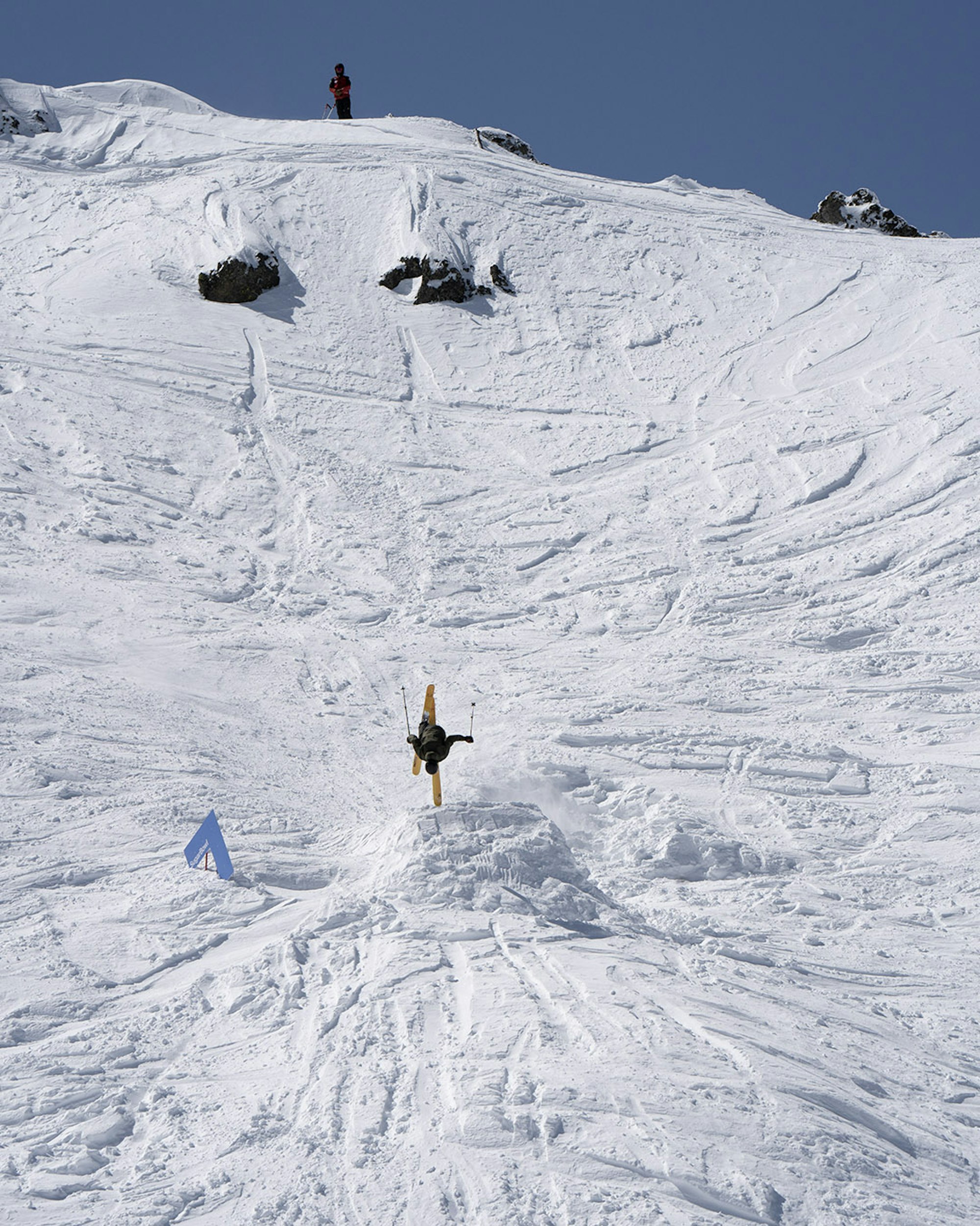 With shovels in hand, the crew hit the legendary Silver Belt Gully ready to build. The experience of forging a course and having a say in the layout of each feature is part of what makes The Silver Belt such a unique and rare opportunity for competitors. By Friday, it was time to enter the proverbial octagon, and the vibe was electric. California sunshine poured over the resort and the 15 female and 25 male skiers selected for finals headed for the start gate.