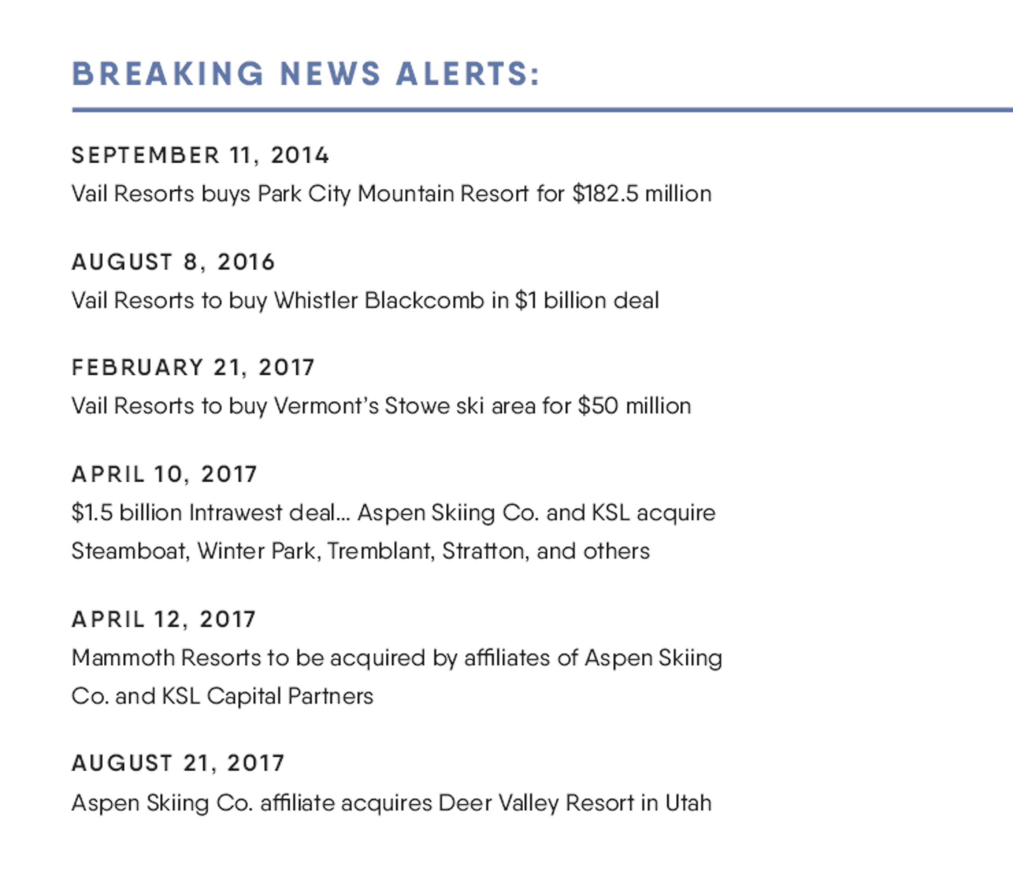 This flurry of mergers and acquisitions activity winnowed an already-small raft of major independent North American ski resorts, a group that includes Jackson Hole, Telluride, Snowbird and Sun Valley.