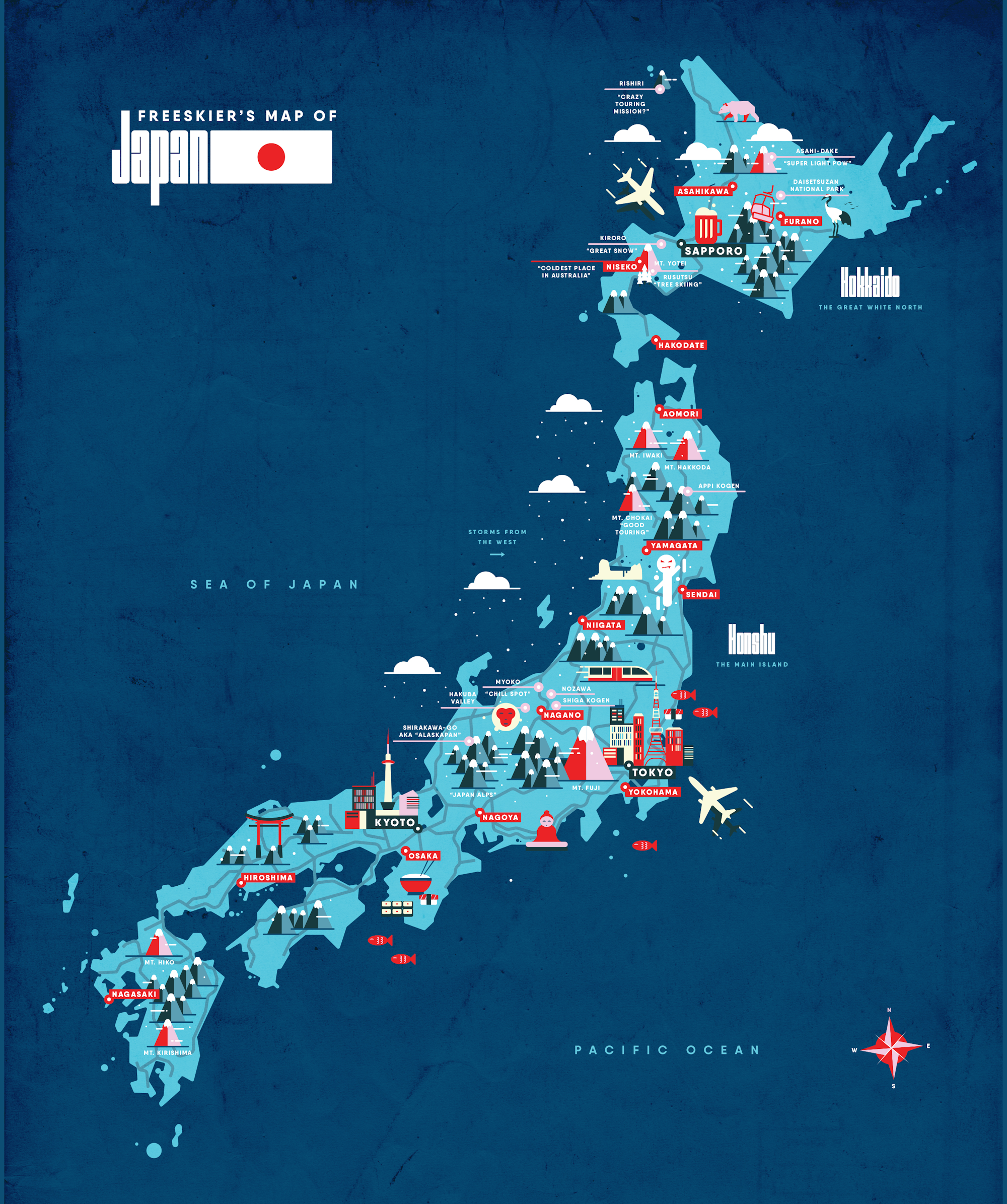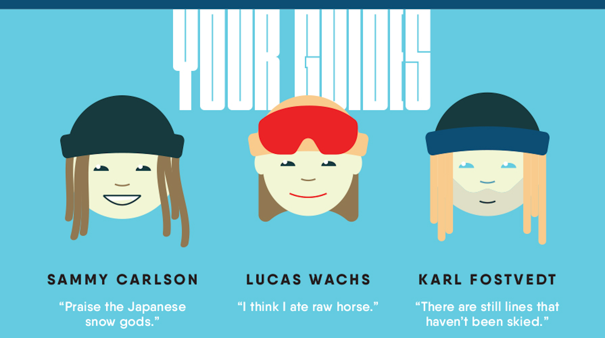 But as a stranger in a strange land, youâll need to learn something of the local customs, and above all, youâll need a map to find the treasure. The word may be out that Japan has the goods, but the details remain fuzzy, and the journey remains a daunting one. So for all the would-be plunderers of Japanese powder, we followed Dakine athletes Sammy Carlson, Karl Fostvedt and Lucas Wachs nearly 6,000 miles around the globe in order to compile this quick ânâ dirty guide to doing Japan right.