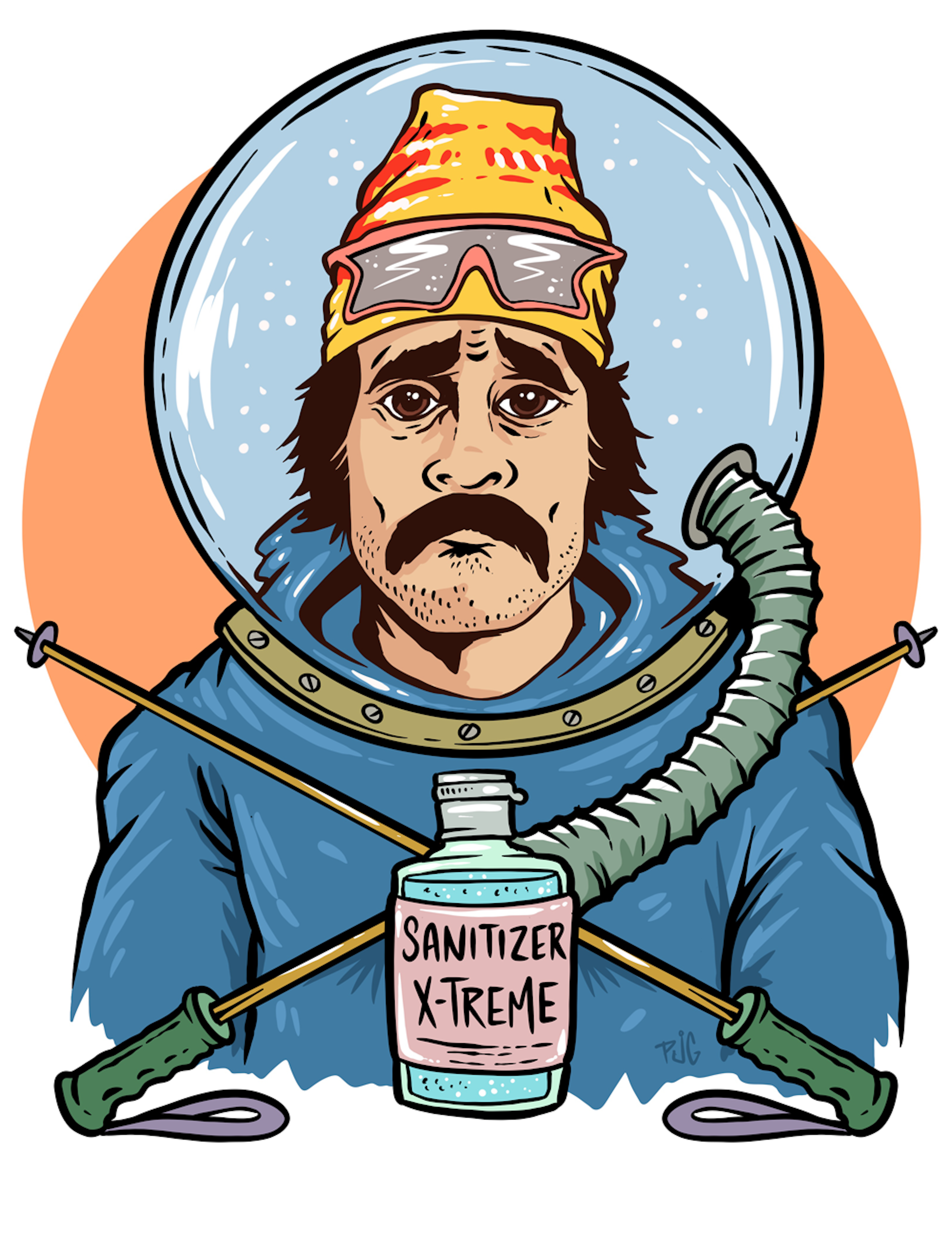 This skier is incredibly nervous to be out of their home, and by nervous I mean they’re sweating more than a microwaved hot dog. Their head is on a swivel constantly looking for anyone entering their personal 30-foot bubble of perceived safety, which would be a human-sized plastic gerbil ball if they could find one. They’ll be holding their ski poles like Leonardo the Ninja Turtle holds his katanas, ready to defend their social distance. This skier is never without two spray bottles of 409 slung to their belt like six shooters and will also be equipped with a bandoleer of Clorox wipes and a Super Soaker full of bleach. They will surely be masked, and by masked I mean double-masked, which is to say triple-masked. They might even wear one of those old timey metal scuba helmets. This skier will also look like me. It is me. I am this skier. I am nervous, so very, very nervous.