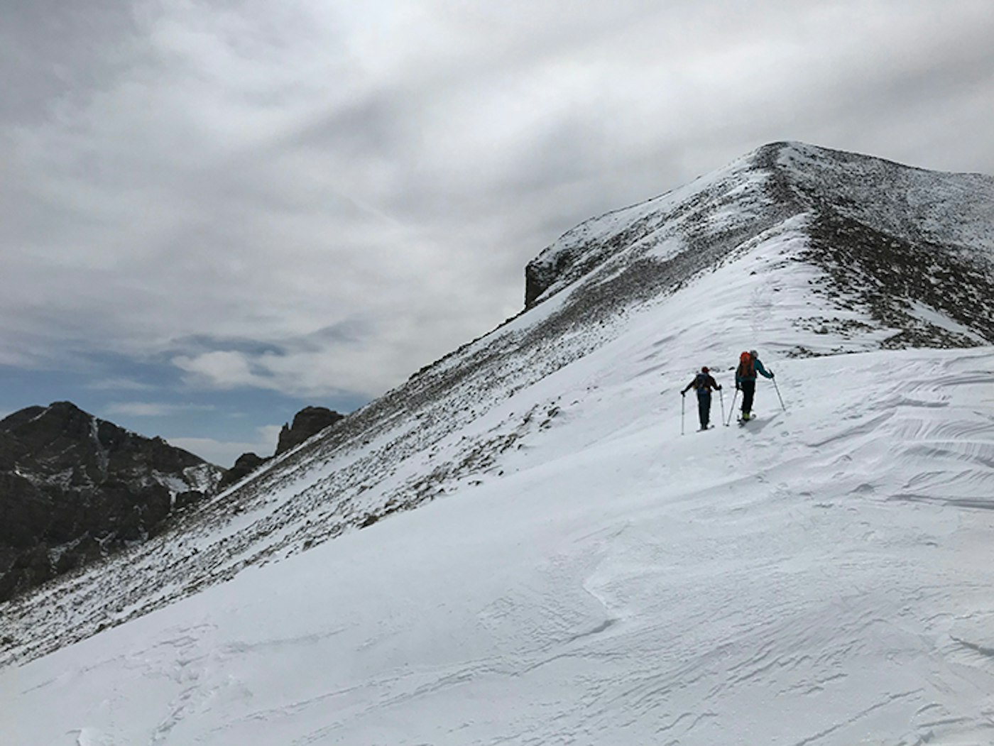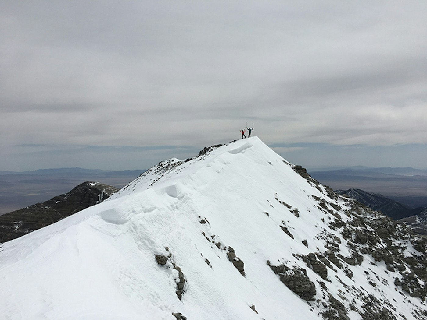 Chason and Adam on the summit ridge. Jeff Davis Peak peaks its head up on the left. Photo: Nat Houston