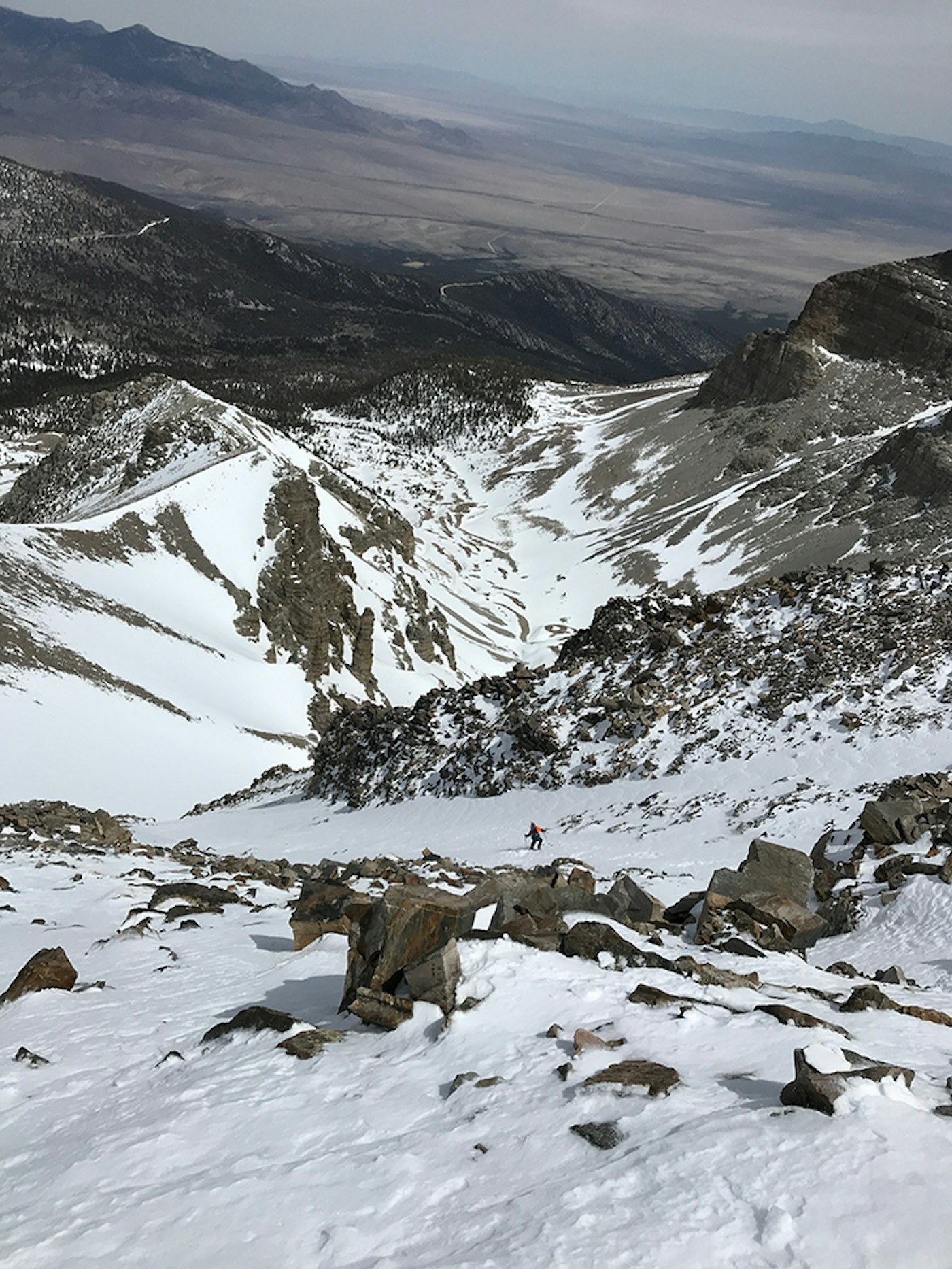 To be completely honest, I had never heard of this hidden gem until a week before I skied off its highest point at 13,065 feet. My buddy, Adam Moszynski—founder of Corbeaux Clothing—sent me a text saying that he had three days off and wanted to hit the road to ski where no one else would be. I was, of course, intrigued. He pitched me on skiing Wheeler Peak, the centerpiece of Great Basin National Park, which is the tallest independent mountain in Nevada, and the twelfth most prominent peak in the contiguous United States with 7,563 feet of relief. I agreed immediately, crossed my fingers and sent out a flurry of texts in attempt to shift some things around at the restaurant I work at.