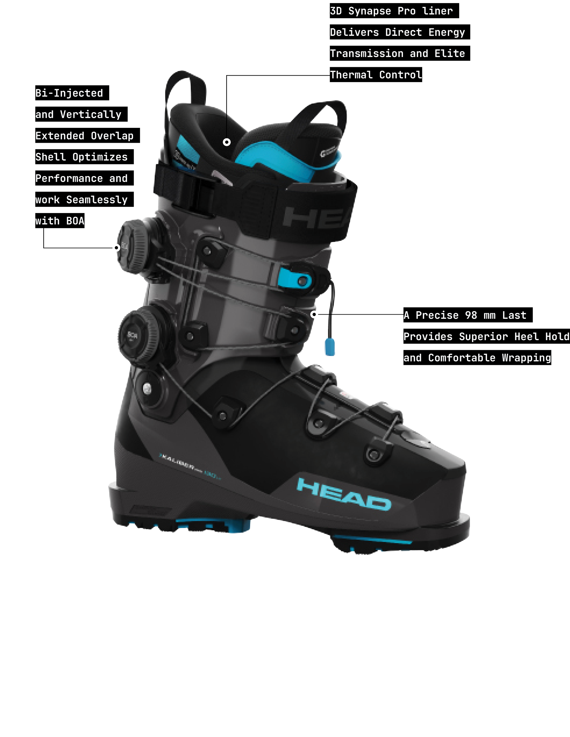 The new benchmark for precision, the Kaliber Pro LV leverages strategic BOA placement to drive higher edge angles and a secure rebound. This is our most aggressive all-mountain boot, offering high-performance and custom-fit options that our most demanding customers require.