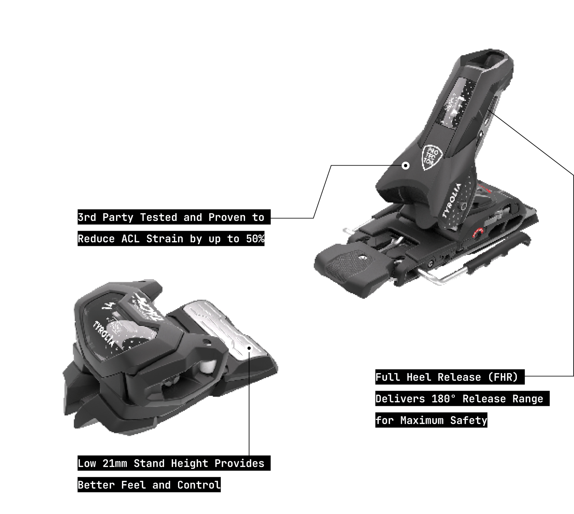 Safety meets high-performance freeskiing with The Protector+ Attack 14 GW. This binding combines 180° Full Heel Release technology with a lower stand height, reduced weight, a more compact design and higher DIN settings than the previous generation.