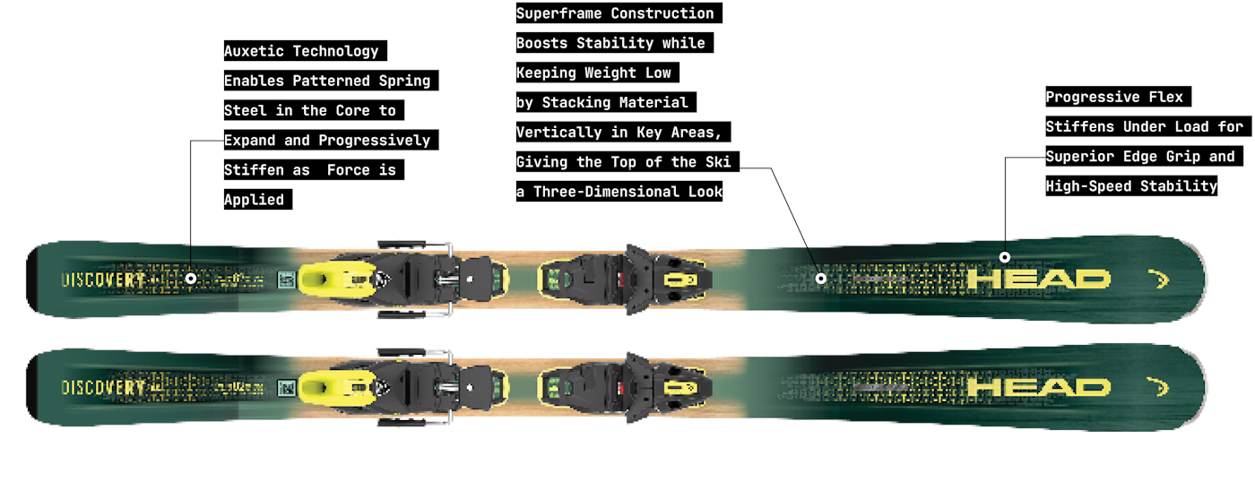 The Discovery is a versatile frontside machine designed to help skiers progress with confidence. This ski is engineered to be light and agile, but when the speeds and forces increase, the metal layers in the core flex and expand, providing stability that matches the driver’s ability level.