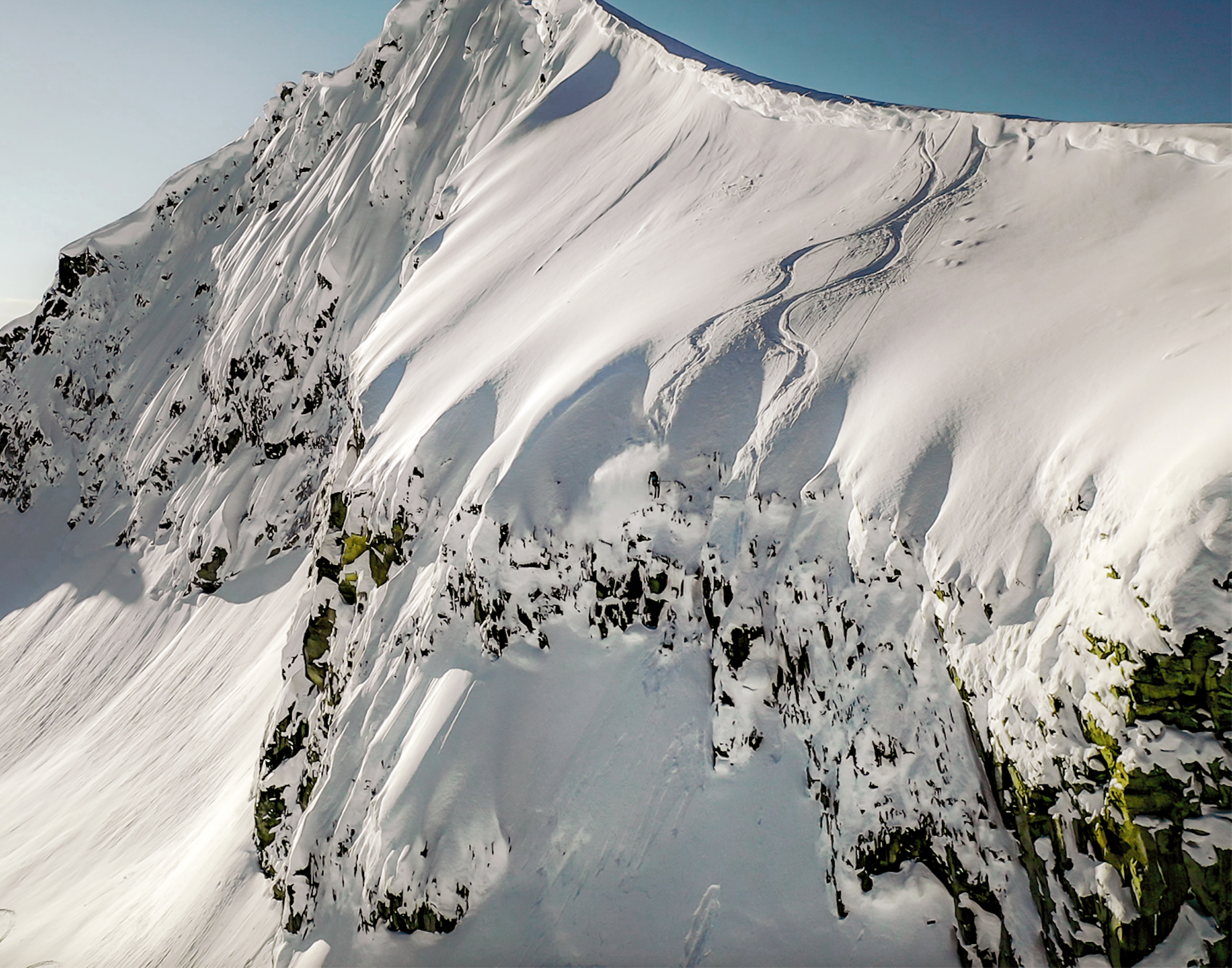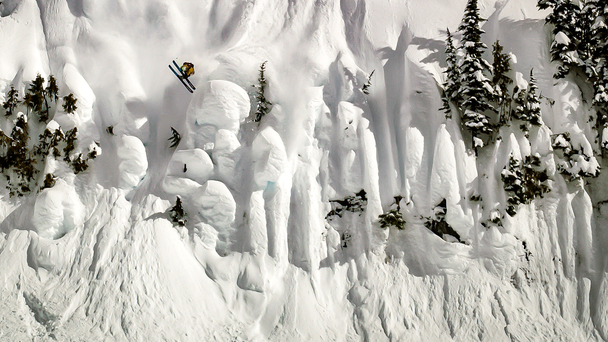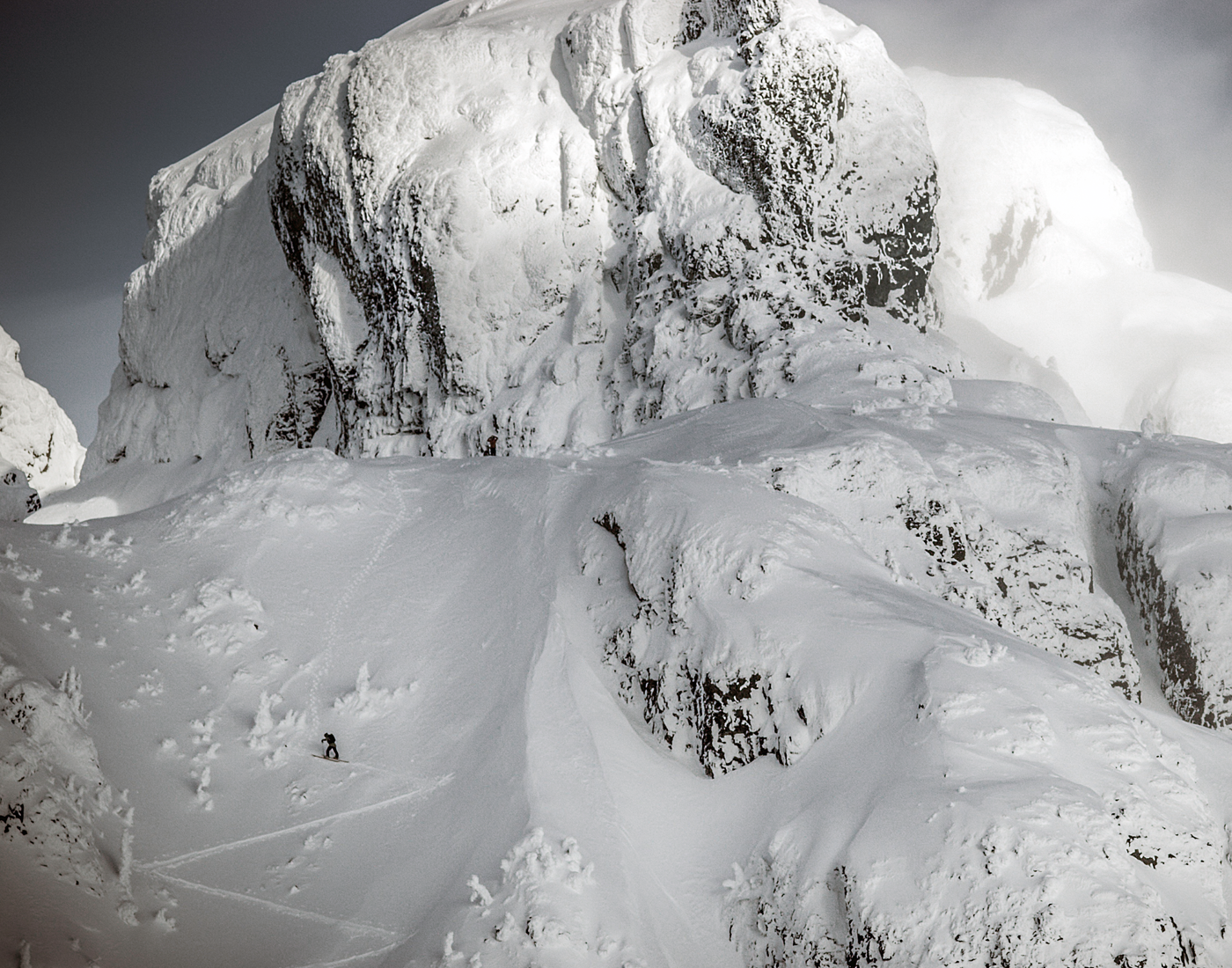 Matchstick’s signature humor comes out a bit more in the Mt. Cain segment, featuring longtime pros Eric Hjorliefson, Mark Abma and Chris Rubens. The “crusty crew,” as the narrator puts it, heads to a little-know haven, a small island in the Pacific Ocean off the coast of Vancouver, home to Mt. Cain Alpine Park. Originally a place where the island’s loggers came to ski, Mt. Cain is undoubtedly one of the untouched gems of resort skiing, home to one T-bar, a commune of trailers and a community that puts skiing first. To start, Hoji, Abma and Rubens thrash’n’bash their way through a hefty storm cycle but the sun shines during the second part of this segment and they’re left with beautiful, rime-covered cliffs perfect for high-speed exploits. There’s some bigggg terrain just out of the ski area’s boundary and we’re pretty sure Hoji clocked in at a top speed of 69 miles per hour 33 minutes into the movie.