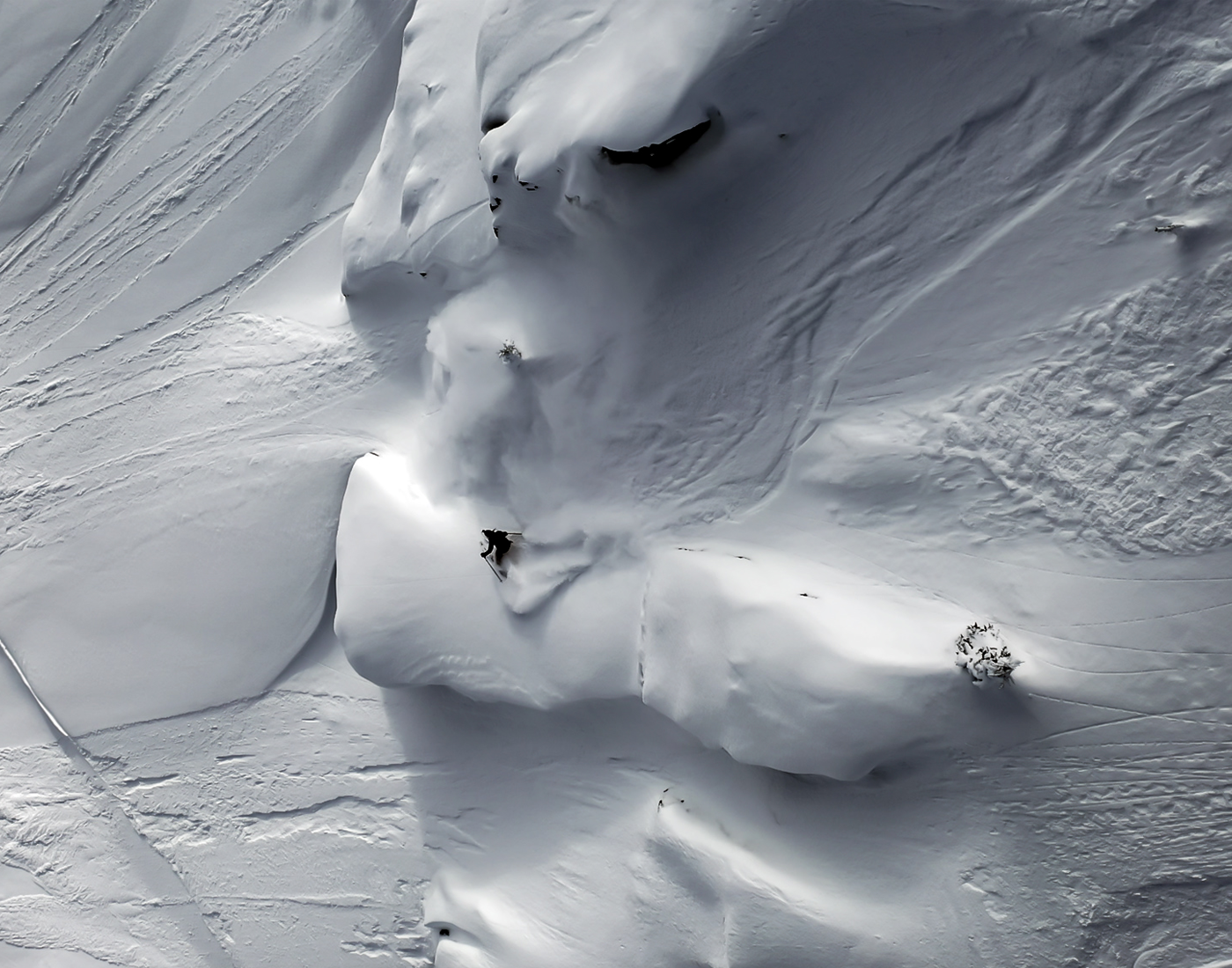 Next up, Karl Fostvedt, one of skiing’s most “kinetic” athletes. Throwing his signature trick, “The Hot Karl,” and the movie’s first double backie, we have to say: Don’t take a bathroom break during this part. Fostvedt is, plain and simple, one of the most exciting skiers to watch, throwing tricks and finding transitions at every possible moment. His double backflip-to-double backflip had us floored: What the hell just happened??? Then, Connery Lundin takes the stage, cruising big-mountain lines and hitting massive cliffs. His triple-hit at 41 minutes absolutely knocked us to the ground; connecting three cliff hits during one descent, Lundin proves he’s got the skiing prowess to back up his bleachblonde, pretty boy looks. We love you, Connery.