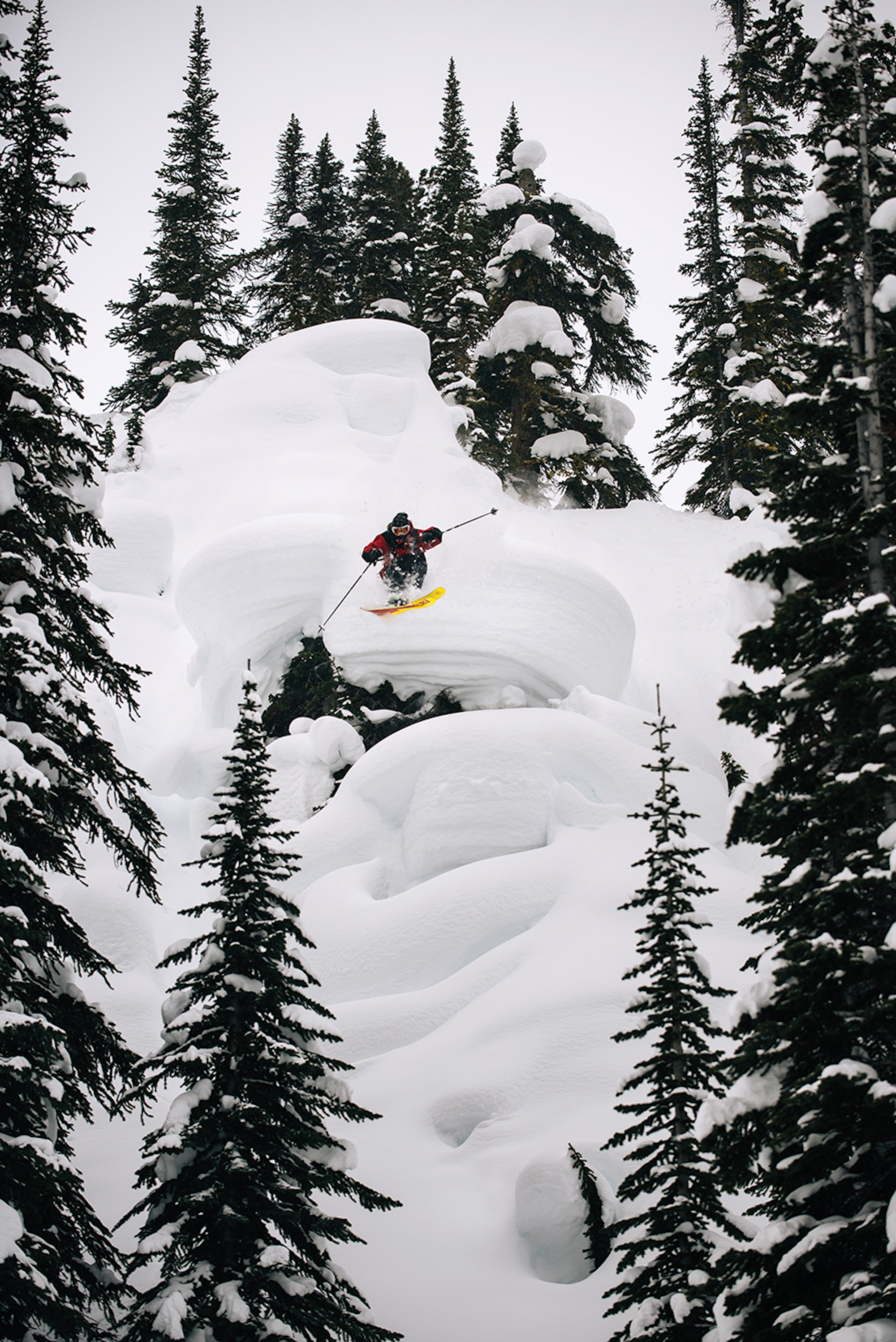 While there was a bit of a learning curve, as Merel says, Ollila is a “cat on skis,” so it wasn’t long before he was charging pillow lines and finding ways to turn the big-mountain features of the Selkirks into his personal terrain park.