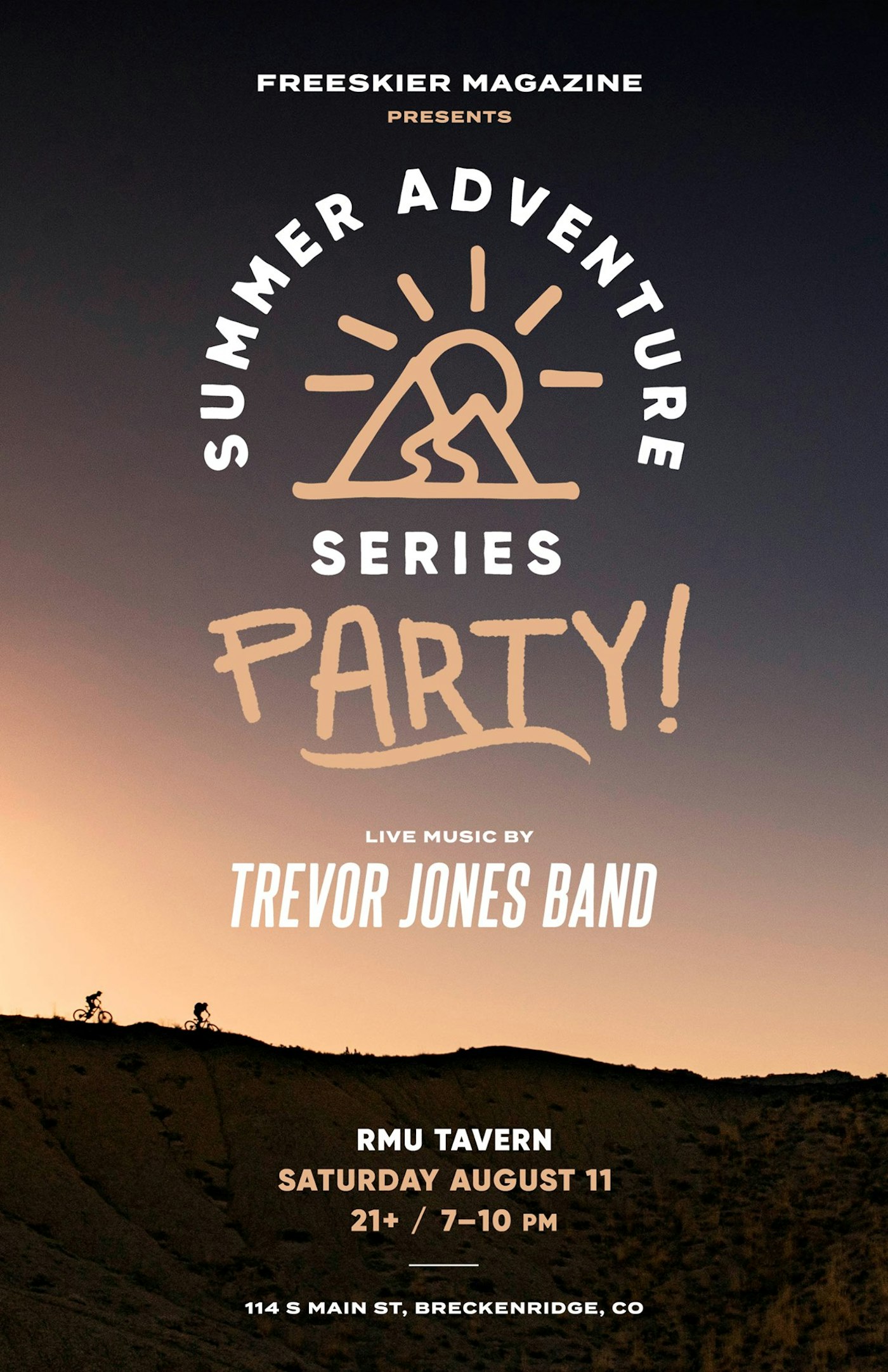 FREESKIER’s Summer Adventure Series is a tribute to summer days in the mountains. On Saturday, August 11, we’ll be taking over the Rocky Mountain Underground Tavern on Breckenridge’s Main Street for a night of drinks and dancing with live music provided by the talented Trevor Jones Band. Music starts promptly at 7PM, so get there early. Admission is free, and the more the merrier.
