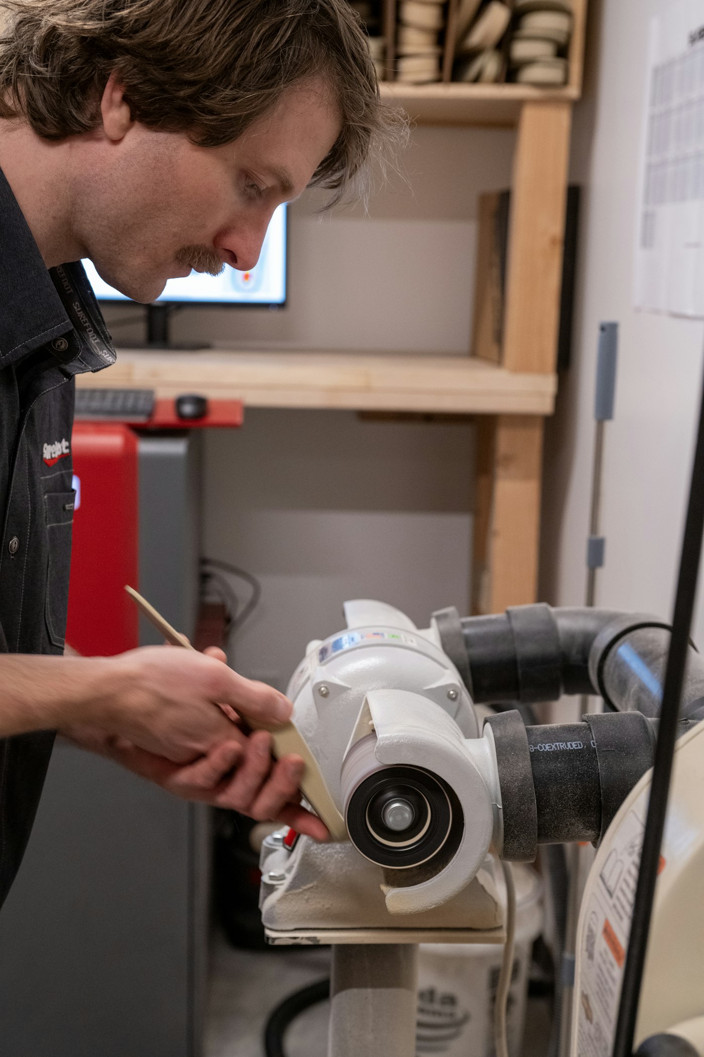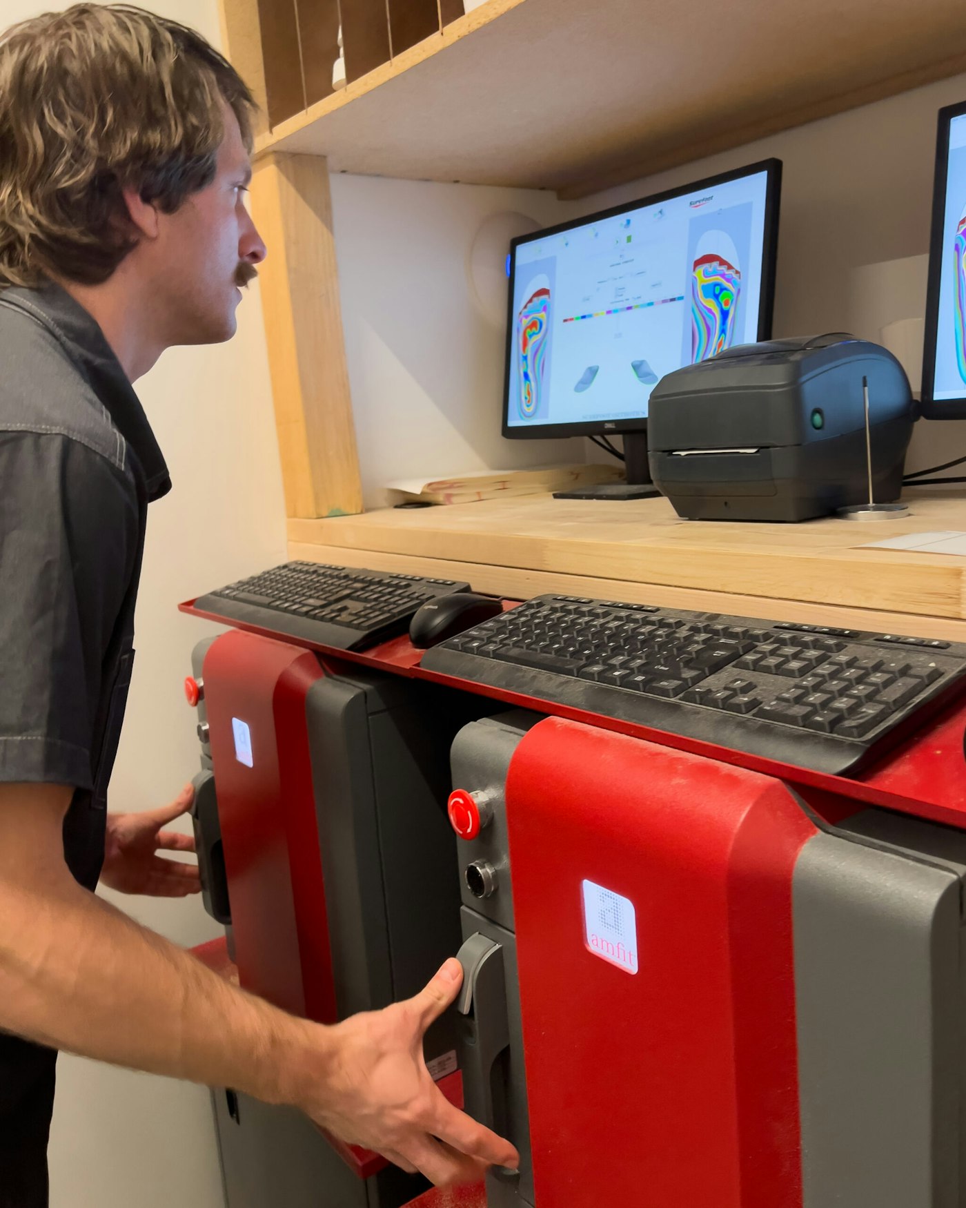 The information from the process above is then sent to a computer in the back of the shop which is connected to two large CNC machines. Surefoot’s boot fitters then take two proprietary blank insoles and puts them into the CNC machine and based off the scans of your feet, the machine cuts two insoles specific to the customers right and left foot. After a few minutes the insoles are taken from the CNC machine and finished on a sanding belt to remove any imperfections. This process completely removes any human error found in other insole making processes, and if for some reason you needed another insole to put into your shoes or another pair of ski boots, you can simply call your local Surefoot store and they can make you a new set based off your foot scans which lives in their database.