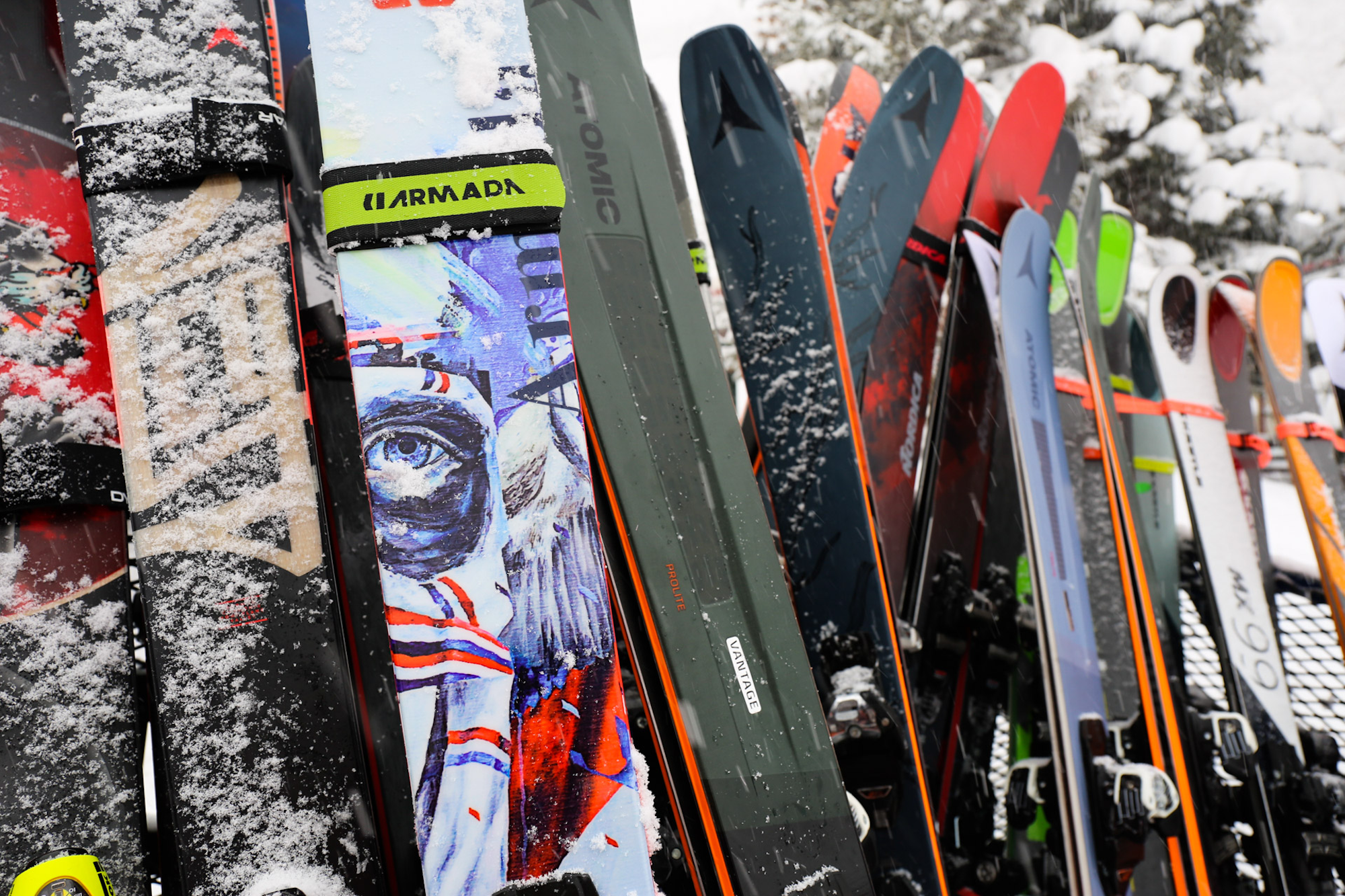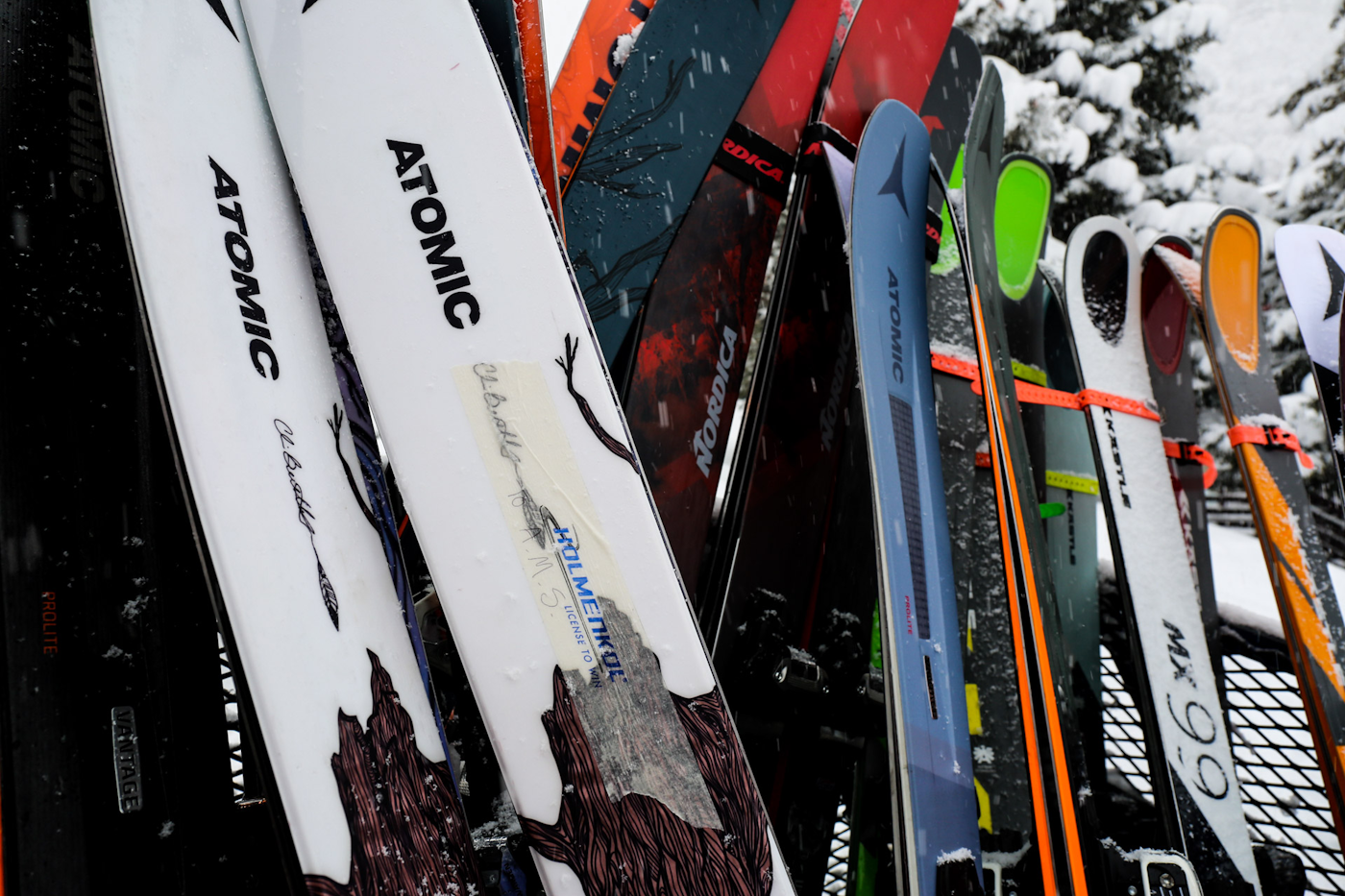 Skis from Atomic and Kästle ready for testing.