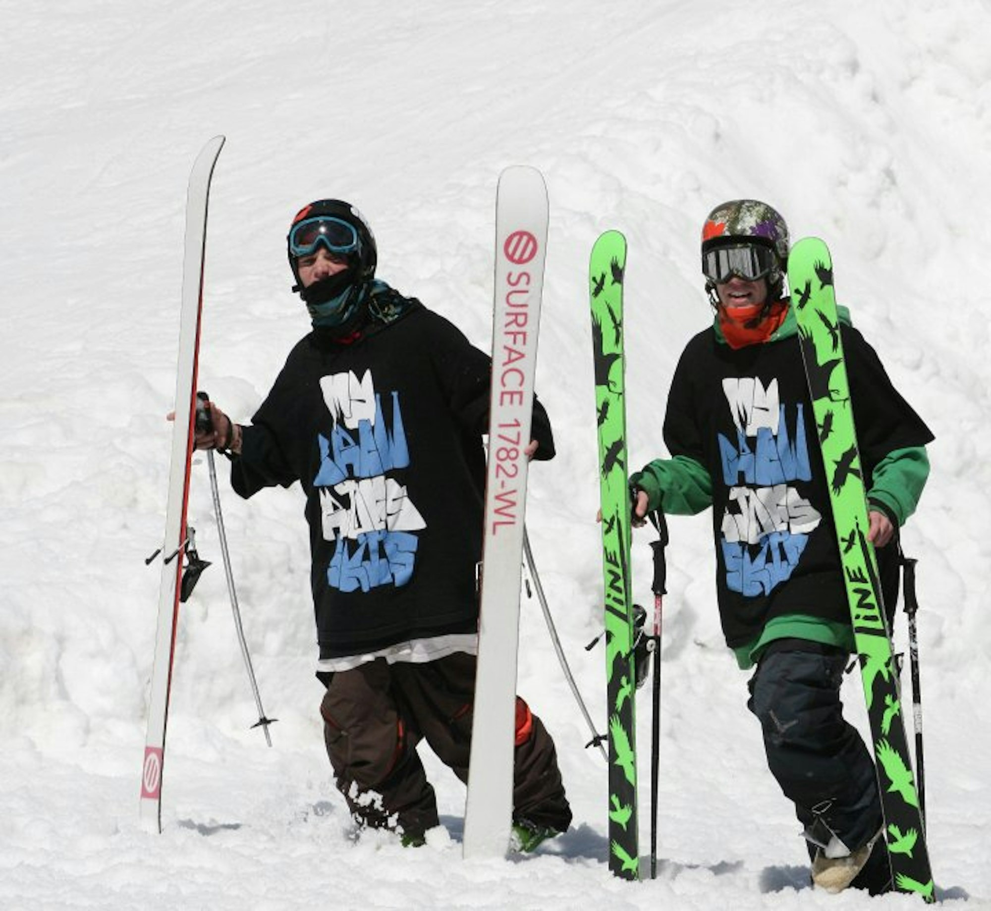 It was the end of 2003 when I got my first pair of twin tips, the Line Mike Wilson Pro with blue and white afro pick bases. I was the butt of jokes for the entire winter that year because, at 14, I was almost six feet tall but rode skis that only came in 153 centimeters. I didn’t care, I liked the graphics. I especially gravitated towards the funky lowercase Line logo, which I drew in just about every margin of every school notebook that year. I had skied my whole life, but never cared for the shiny silver and fluorescent spaceship-inspired ski graphics of the late ’90s and early 2000s. Line changed that for me with original, hip-hop, graffiti and pop-art inspired graphics that transcended the limited visual language of the ski industry long before anyone else tried.