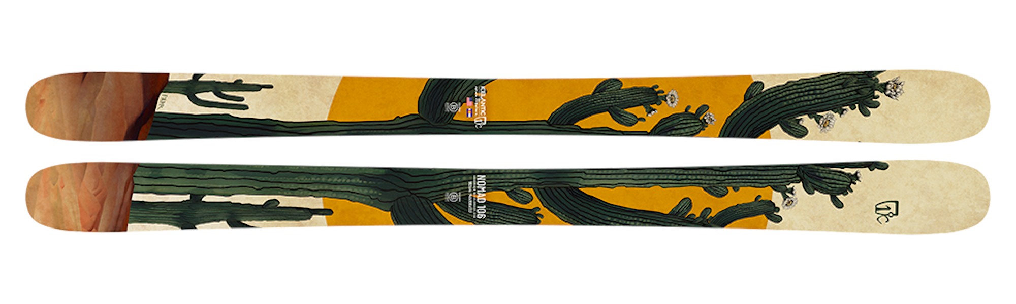 Icelantic completely revamped the Nomad collection this year and it’s the most significant redesign of a line that the brand has ever done. For 2024-25, the Nomad 106 features a slightly more symmetrical tip and tail, with deep rocker for effortless float in powder and more intuitive switch skiing. The longer effective edge is complemented by 4 mm of camber underfoot, which means this 106-mm plank can throw down a nasty carve for its girth.