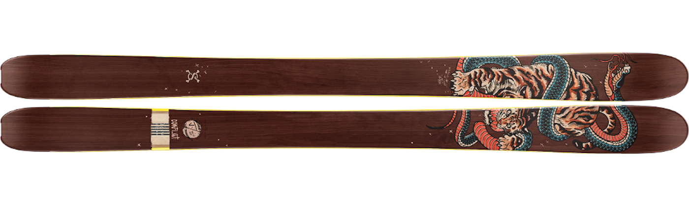 A fan-favorite in the all-mountain ski category, the Switch caters to jib-focused skiers that the park just cannot contain. Featuring a twin shape with tip and tail rocker, the Switch is an agile tool for quick schmears in the trees and, of course, riding backwards. The Switch also boasts a substantial effective edge with an aspen and maple core that’s reinforced by four carbon stringers, making it robust and responsive.