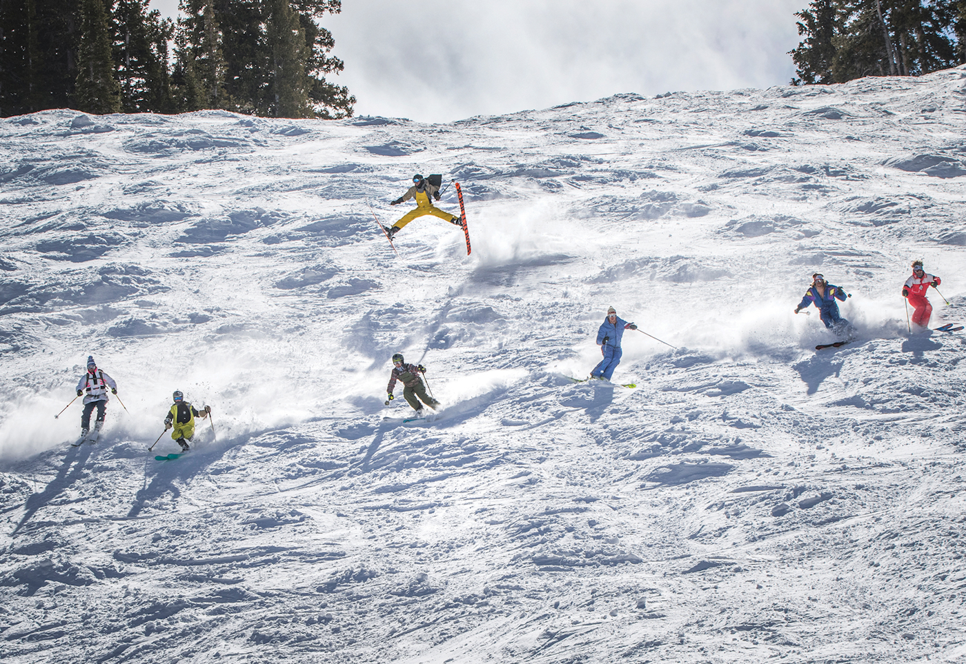 SKIERS (from left to right): Sam Blethen, Scotty VerMerris, Connor Davis, Willie Nelson, Zach Berman, Spencer Harkins, Nat Houston | PHOTO: Erik Seo | LOCATION: Snowbird, UT