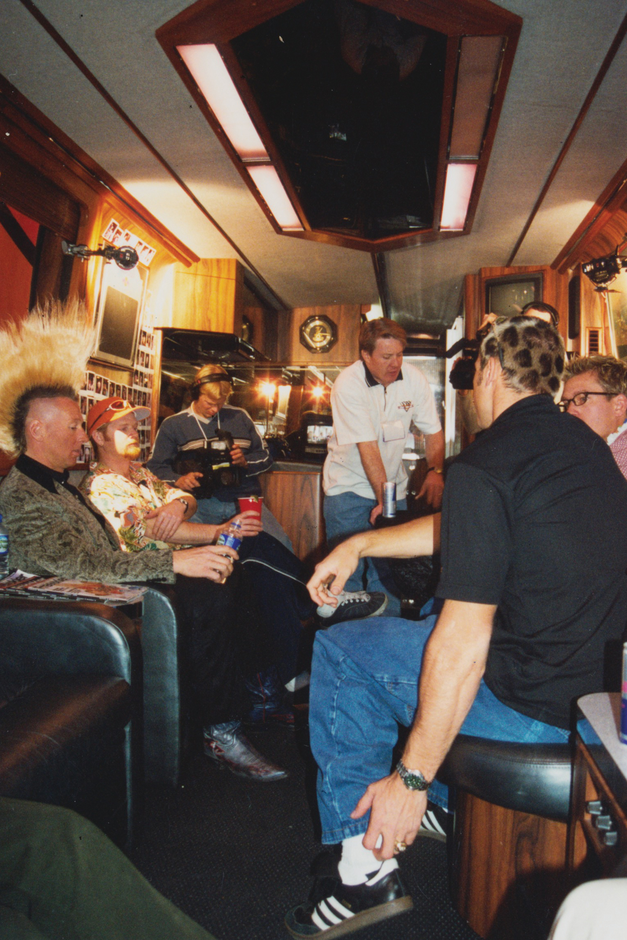Inside the FREESKIER Tour Bus with Glen Plake (left) and Brad Holmes (right), 2000
