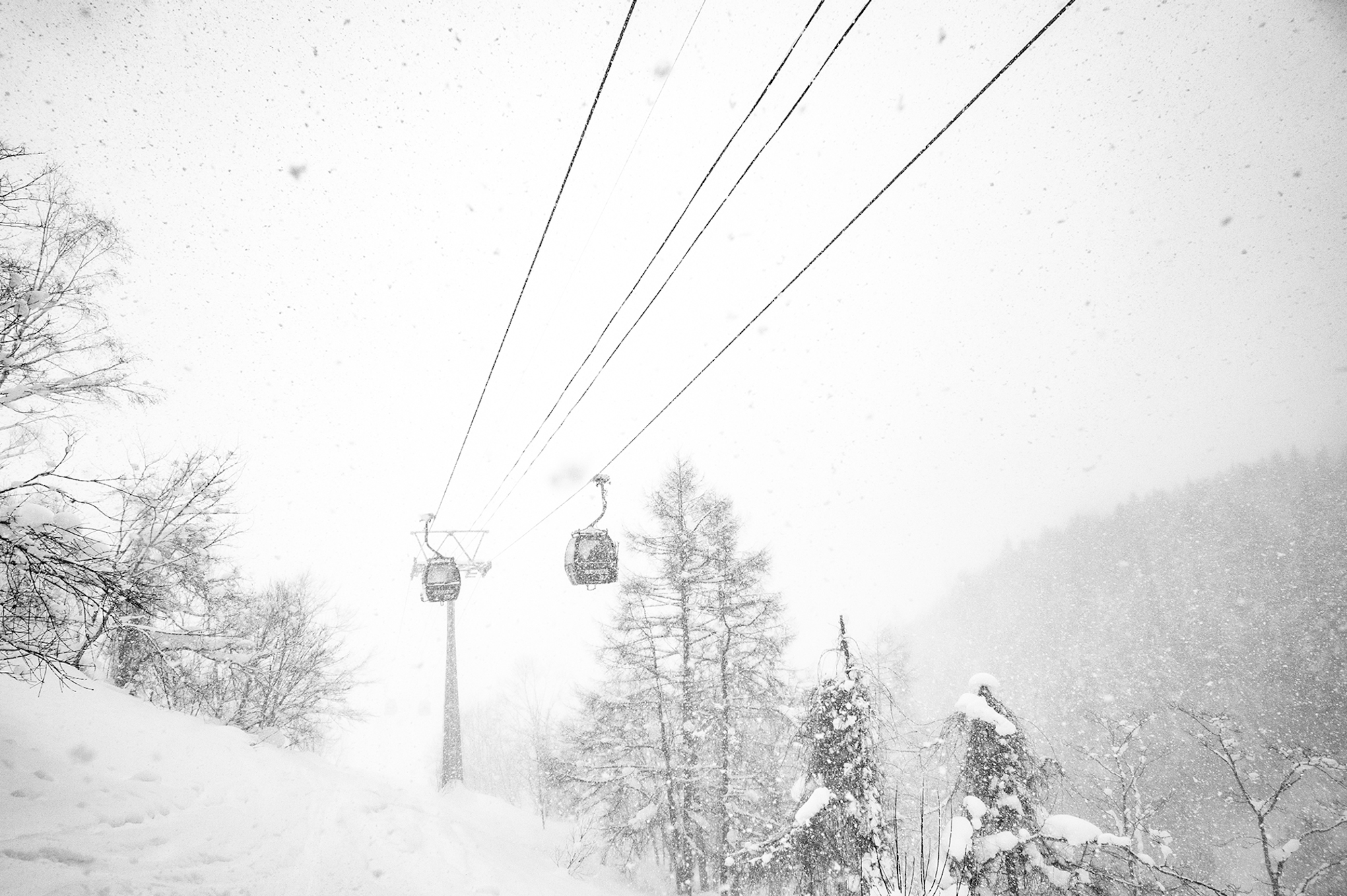 After hopping on the gondola outside our cabin door and making a quick transfer to the East No.2 Gondola, one of Rusutsu’s 18 lifts, we exit the gondola station at the top of East Mountain. I click into my skis and follow Jake and Charlie along a traverse to the skier’s right, through snow-crusted trees and crisp air. The trees below the traverse welcome us with deep, dreamy pow and I’m pretty sure the sounds of our overwhelming delight can be heard by every other person on the mountain. There’s no question that we sound ridiculous but Japan is already everything we’d hoped for and we’re just plain old pumped.