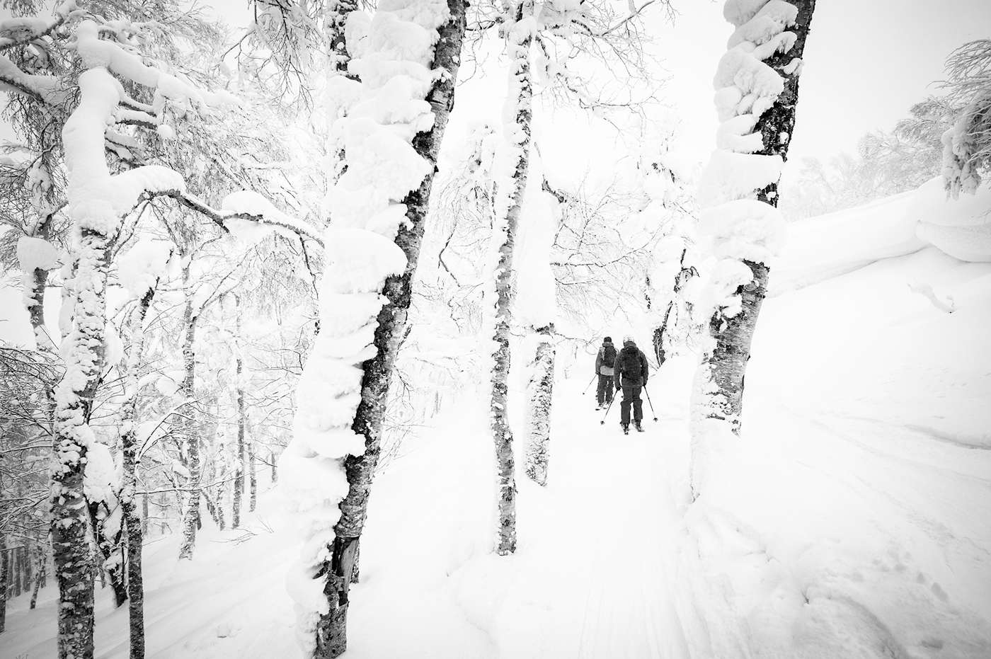 Later that night, a group of us head to the No. 2 Quad on West Mountain for some night skiing where we would’ve been able to see Mt. Yotei to the west, had it been a clear night. Stadium lights cover the main night skiing runs and we head off-piste into the trees in the middle of the run. They are completely untouched. This side of the mountain has been packed with beginner skiers all day who haven’t ventured off the corduroy. We yelp and hoot and holler, flying through the trees with cold smoke trailing behind us.