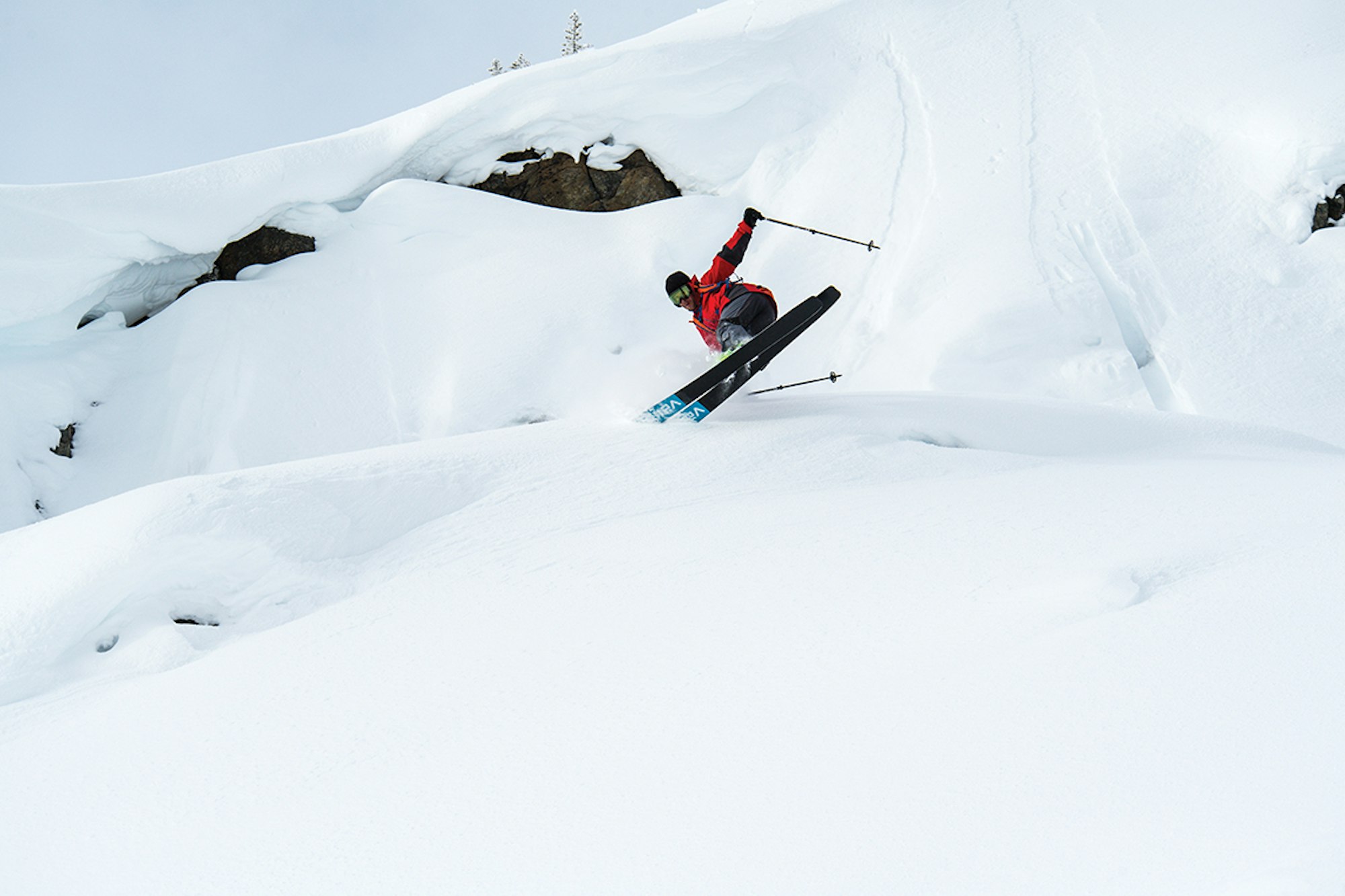 A few days ago, a helicopter dropped us off in the shadow of Cupola Mountain at Golden Alpine Holidays’ (GAH) Meadow Lodge, and from here we’re ski touring and seeking our fill of deep turns while shooting for Matchstick’s new film, Drop Everything. GAH is essentially Hoji’s domain. Over the past decade, he’s put in roughly 220 days between GAH’s four lodges, all situated at treeline in neighboring drainages of the Esplanade Range, just north of Golden, British Columbia and the aptly named Powder Highway. He spent a couple of weeks one summer lugging, chipping and placing rocks to create an impressive fireplace at Sentry Lodge, and one of Sentry’s outhouses even bears his name. In the early season, he runs an annual “pillow and powder” skiing camp here, and when camp lets out he remains to stack film clips. This is Hoji’s home away from home and it’s no surprise, then, that his performances in this arena are routinely spectacular; no one skis this technical terrain with more confidence, proficiency or speed.